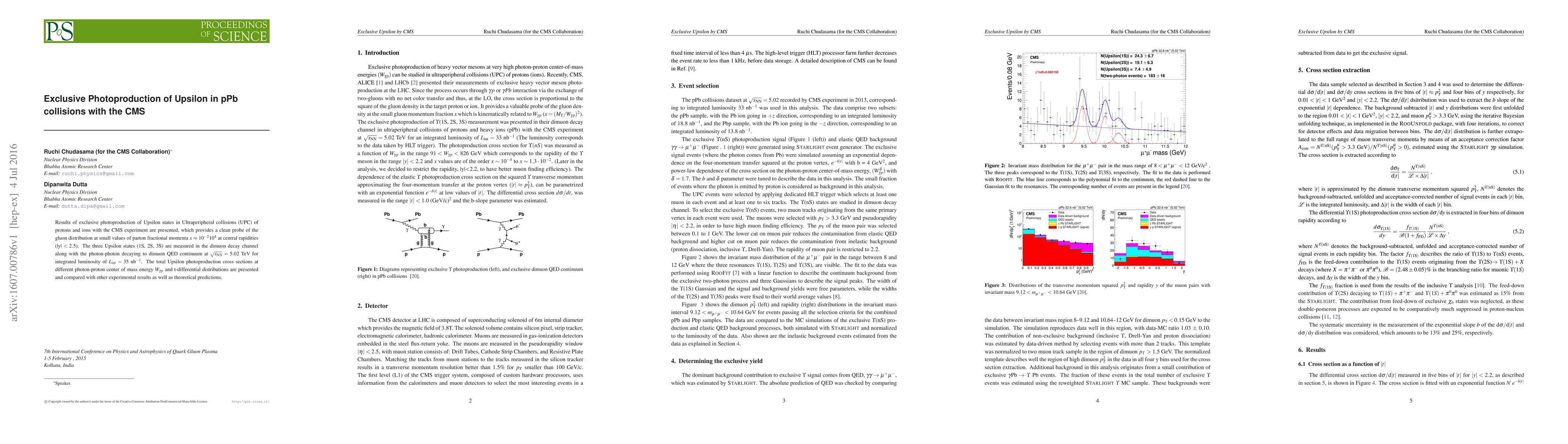 Results of exclusive photoproduction of Upsilon states in Ultraperipheral collisions (UPC) of protons and ions with the CMS experiment are presented, which provides a clean probe of the gluon distribution at small values of parton fractional momenta $x \approx 10^{-2} 10^{4}$ at central rapidities (|y| $< 2.5$). The three Upsilon states (1S, 2S, 3S) are measured in the dimuon decay channel along with the photon-photon decaying to dimuon QED continuum at $\sqrt{s_{NN}}=5.02$~TeV for integrated luminosity of $L_{int} = 35$ nb$^{-1}$. The total Upsilon photoproduction cross sections at different photon-proton center of mass energy $W_{\gamma p}$ and t-differential distributions are presented and compared with other experimental results as well as theoretical predictions.