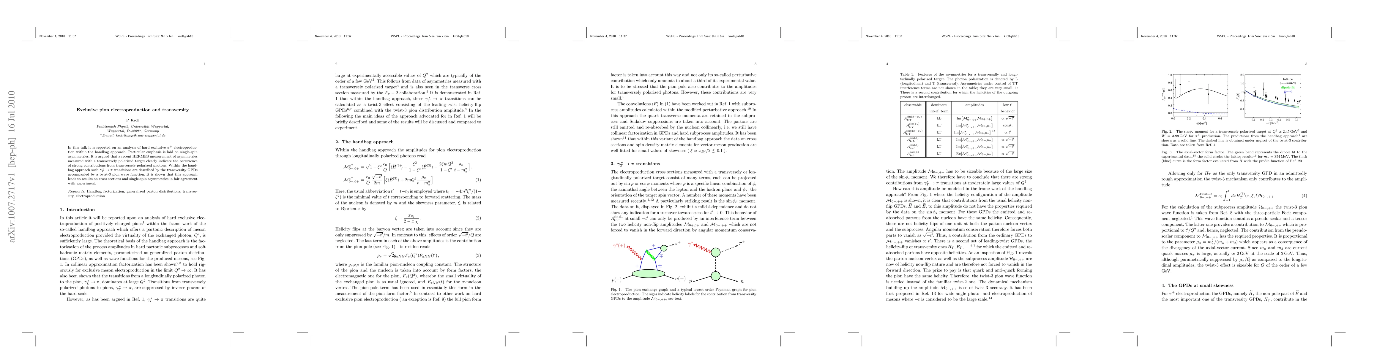 This paper analyzes hard exclusive pion electroproduction using the handbag approach, focusing on single-spin asymmetries. It highlights the significance of recent HERMES measurements indicating strong contributions from transversely polarized photons, which are described by transversity GPDs and a twist-3 pion wave function, aligning well with experimental results.