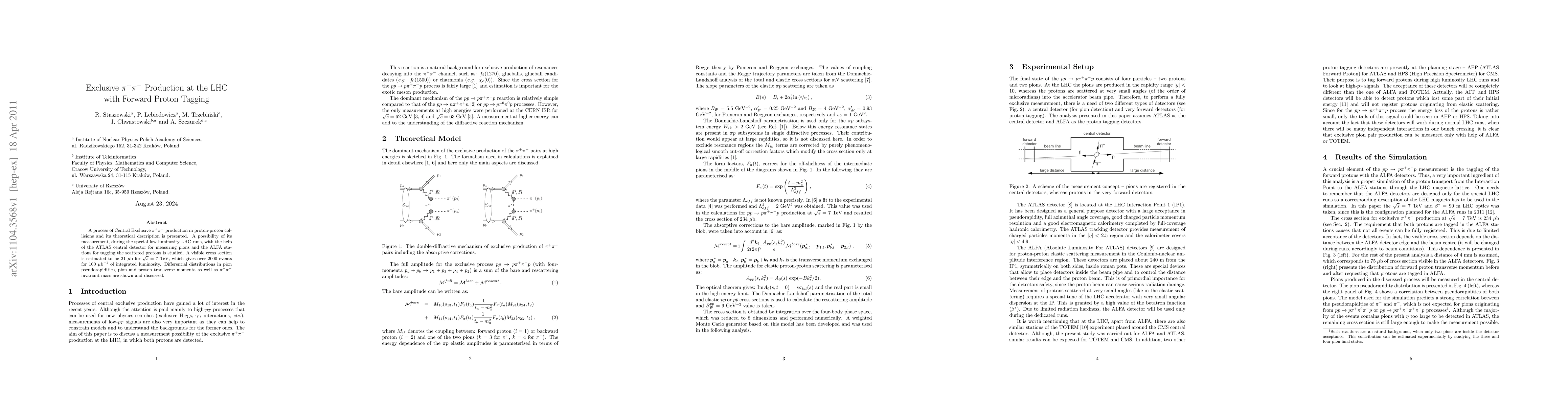 A process of Central Exclusive $\pi^+\pi^-$ production in proton-proton collisions and its theoretical description is presented. A possibility of its measurement, during the special low luminosity LHC runs, with the help of the ATLAS central detector for measuring pions and the ALFA stations for tagging the scattered protons is studied. A visible cross section is estimated to be 21 $\mu$b for $\sqrt{s}=7$ TeV, which gives over 2000 events for 100 $\mu$b$^{-1}$ of integrated luminosity. Differential distributions in pion pseudorapidities, pion and proton transverse momenta as well as $\pi^+\pi^-$ invariant mass are shown and discussed.