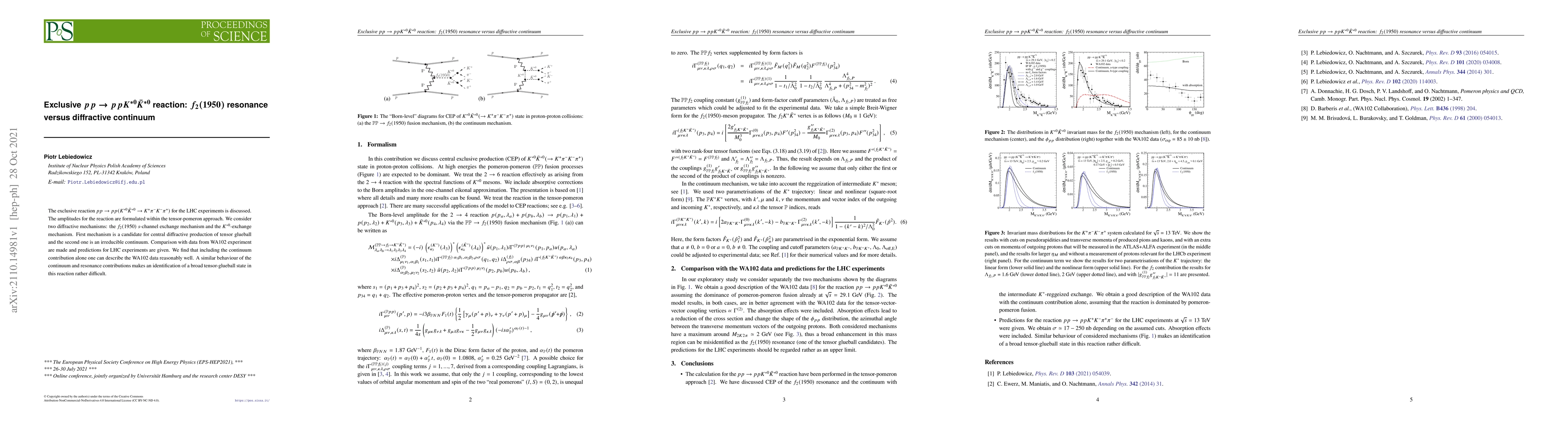 This paper investigates the exclusive $pp \to pp K^{*0} \bar{K}^{*0}$ reaction within the LHC framework, comparing the $f_{2}(1950)$ resonance and diffractive continuum contributions. The study finds that the diffractive continuum alone can reasonably describe experimental data, complicating the identification of the tensor-glueball state.