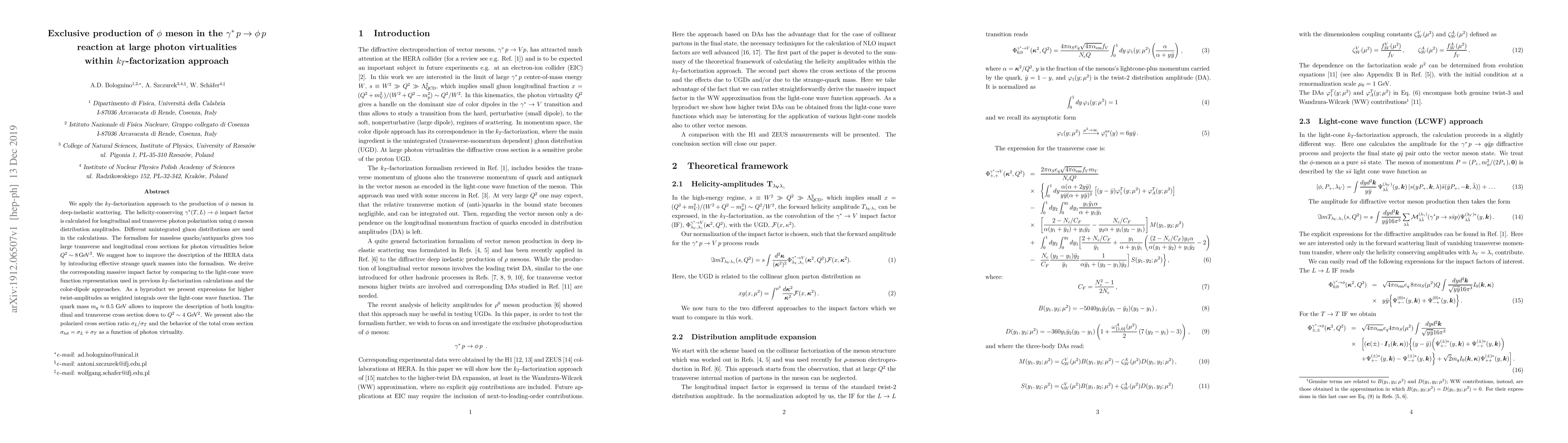We apply the $k_T$-factorization approach to the production of $\phi$ meson in deep-inelastic scattering. The helicity-conserving $\gamma^*(T,L) \to \phi$ impact factor is calculated for longitudinal and transverse photon polarization using $\phi$ meson distribution amplitudes. Different unintegrated gluon distributions are used in the calculations. The formalism for massless quarks/antiquarks gives too large transverse and longitudinal cross sections for photon virtualities below $Q^2\sim 8 \, \rm{GeV}^2$. We suggest how to improve the description of the HERA data by introducing effective strange quark masses into the formalism. We derive the corresponding massive impact factor by comparing to the light-cone wave function representation used in previous $k_T$-factorization calculations and the color-dipole approaches. As a byproduct we present expressions for higher twist-amplitudes as weighted integrals over the light-cone wave function. The quark mass $m_q \approx 0.5$ GeV allows to improve the description of both longitudinal and transverse cross section down to $Q^2 \sim$ 4 GeV$^2$. We present also the polarized cross section ratio $\sigma_L/\sigma_T$ and the behavior of the total cross section $\sigma_{tot} = \sigma_{L} + \sigma_{T}$ as a function of photon virtuality.