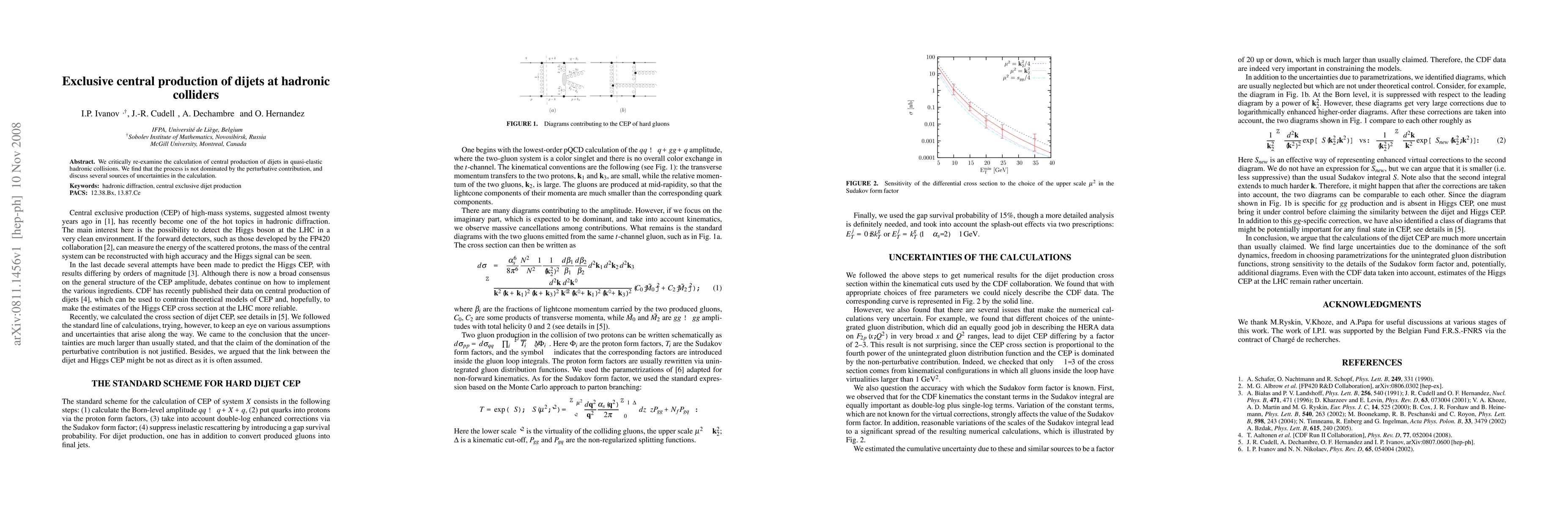 We critically re-examine the calculation of central production of dijets in quasi-elastic hadronic collisions. We find that the process is not dominated by the perturbative contribution, and discuss several sources of uncertainties in the calculation.