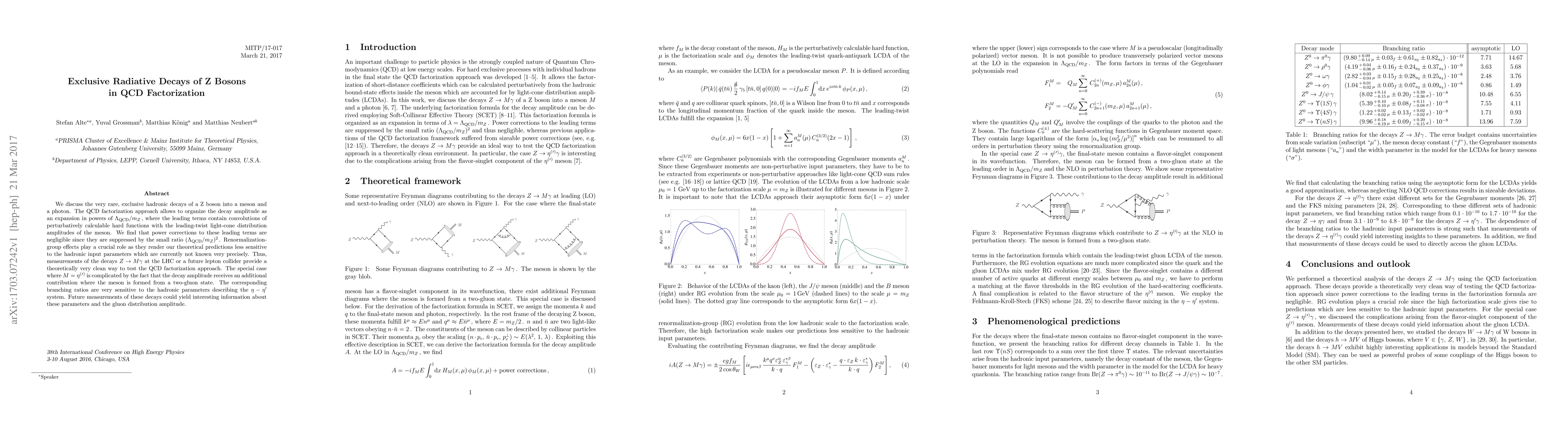 We discuss the very rare, exclusive hadronic decays of a Z boson into a meson and a photon. The QCD factorization approach allows to organize the decay amplitude as an expansion in powers of $\Lambda_{\rm QCD}/m_Z\,$, where the leading terms contain convolutions of perturbatively calculable hard functions with the leading-twist light-cone distribution amplitudes of the meson. We find that power corrections to these leading terms are negligible since they are suppressed by the small ratio $(\Lambda_{\rm QCD}/m_Z)^2\,$. Renormalization-group effects play a crucial role as they render our theoretical predictions less sensitive to the hadronic input parameters which are currently not known very precisely. Thus, measurements of the decays $Z\to M\gamma$ at the LHC or a future lepton collider provide a theoretically very clean way to test the QCD factorization approach. The special case where $M=\eta^({}'{}^)$ is complicated by the fact that the decay amplitude receives an additional contribution where the meson is formed from a two-gluon state. The corresponding branching ratios are very sensitive to the hadronic parameters describing the $\eta-\eta'$ system. Future measurements of these decays could yield interesting information about these parameters and the gluon distribution amplitude.