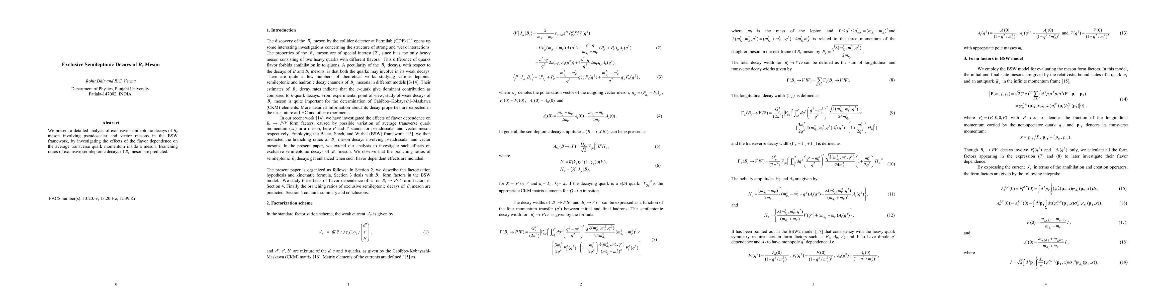 This paper analyzes exclusive semileptonic decays of Bc mesons using the BSW framework, focusing on the flavor dependence of the average transverse quark momentum. Predicted branching ratios for these decays are provided.