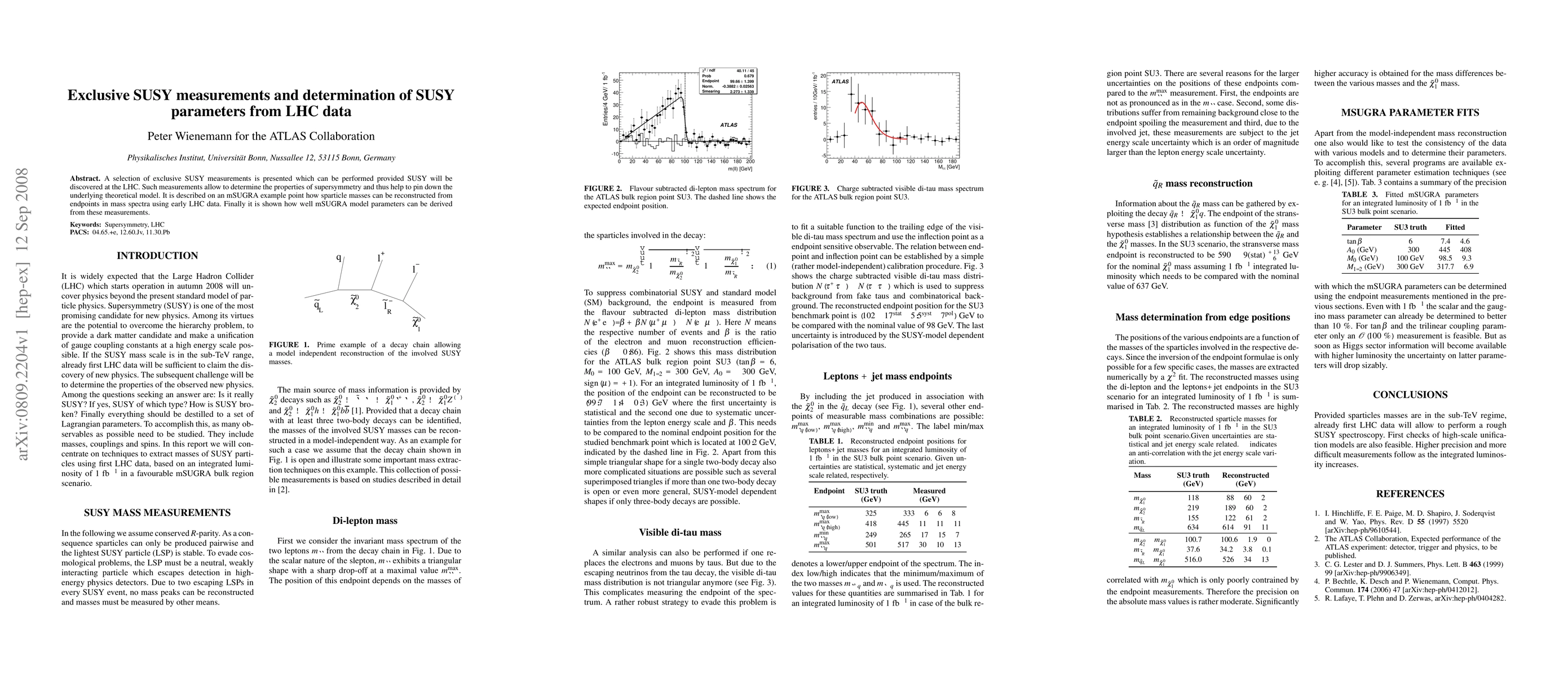This paper presents exclusive SUSY measurements that can determine the properties of supersymmetry if discovered at the LHC, using early data to reconstruct sparticle masses from mass spectrum endpoints. It demonstrates how mSUGRA model parameters can be derived from these measurements.