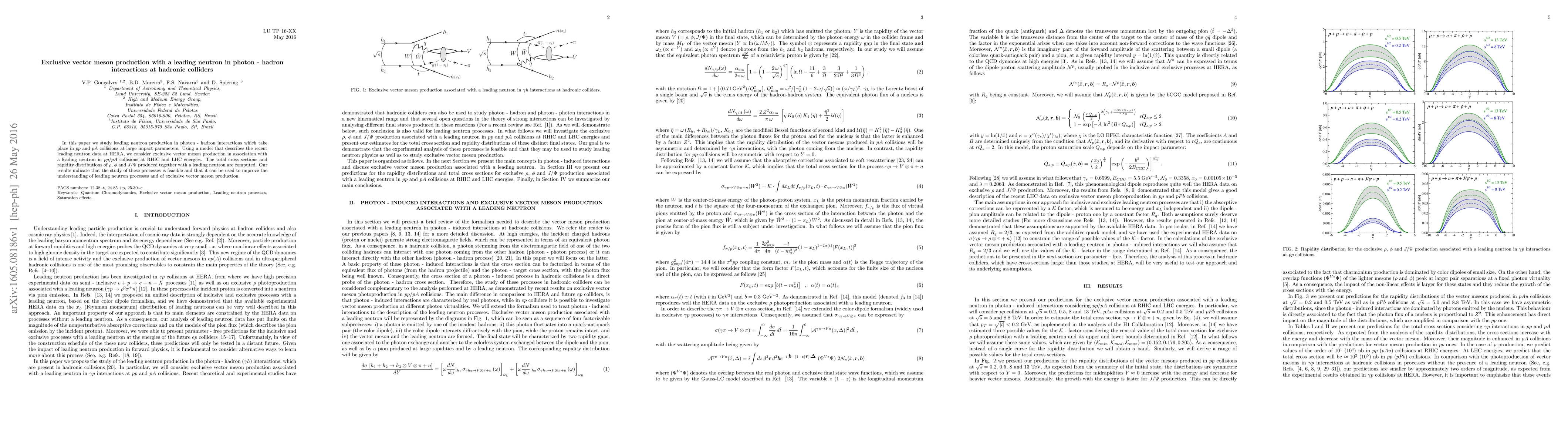 This paper investigates leading neutron production in photon-hadron interactions at RHIC and LHC energies, focusing on exclusive vector meson production alongside neutrons. The study computes the total cross sections and rapidity distributions for $\rho$, $\phi$, and $J/\Psi$ mesons, suggesting that these processes are feasible and can enhance our understanding of leading neutron and exclusive vector meson dynamics.