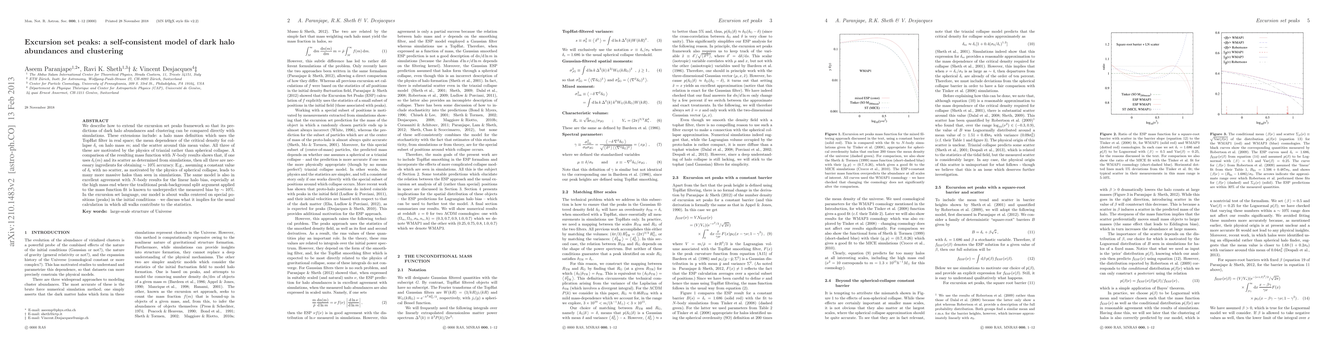 We describe how to extend the excursion set peaks framework so that its predictions of dark halo abundances and clustering can be compared directly with simulations. These extensions include: a halo mass definition which uses the TopHat filter in real space; the mean dependence of the critical density for collapse delta_c on halo mass m; and the scatter around this mean value. All three of these are motivated by the physics of triaxial rather than spherical collapse. A comparison of the resulting mass function with N-body results shows that, if one uses delta_c(m) and its scatter as determined from simulations, then all three are necessary ingredients for obtaining ~10% accuracy. E.g., assuming a constant value of delta_c with no scatter, as motivated by the physics of spherical collapse, leads to many more massive halos than seen in simulations. The same model is also in excellent agreement with N-body results for the linear halo bias, especially at the high mass end where the traditional peak-background split argument applied to the mass function fit is known to underpredict the measured bias by ~10%. In the excursion set language, our model is about walks centered on special positions (peaks) in the initial conditions -- we discuss what it implies for the usual calculation in which all walks contribute to the statistics.