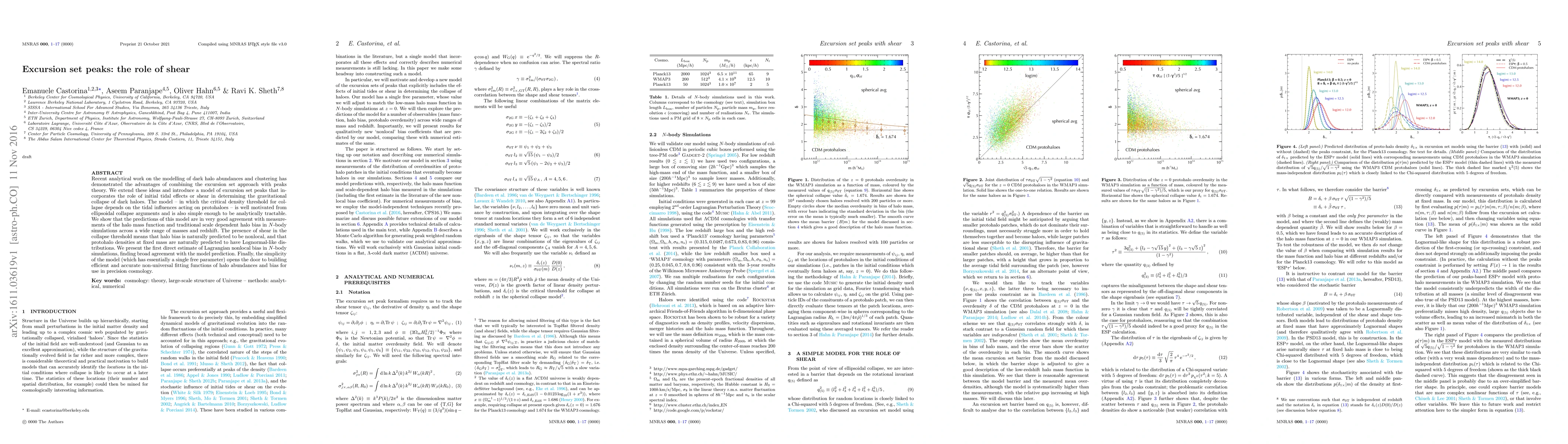 Recent analytical work on the modelling of dark halo abundances and clustering has demonstrated the advantages of combining the excursion set approach with peaks theory. We extend these ideas and introduce a model of excursion set peaks that incorporates the role of initial tidal effects or shear in determining the gravitational collapse of dark haloes. The model -- in which the critical density threshold for collapse depends on the tidal influences acting on protohaloes -- is well motivated from ellipsoidal collapse arguments and is also simple enough to be analytically tractable. We show that the predictions of this model are in very good agreement with measurements of the halo mass function and traditional scale dependent halo bias in N-body simulations across a wide range of masses and redshift. The presence of shear in the collapse threshold means that halo bias is naturally predicted to be nonlocal, and that protohalo densities at fixed mass are naturally predicted to have Lognormal-like distributions. We present the first direct estimate of Lagrangian nonlocal bias in N-body simulations, finding broad agreement with the model prediction. Finally, the simplicity of the model (which has essentially a single free parameter) opens the door to building efficient and accurate non-universal fitting functions of halo abundances and bias for use in precision cosmology.
