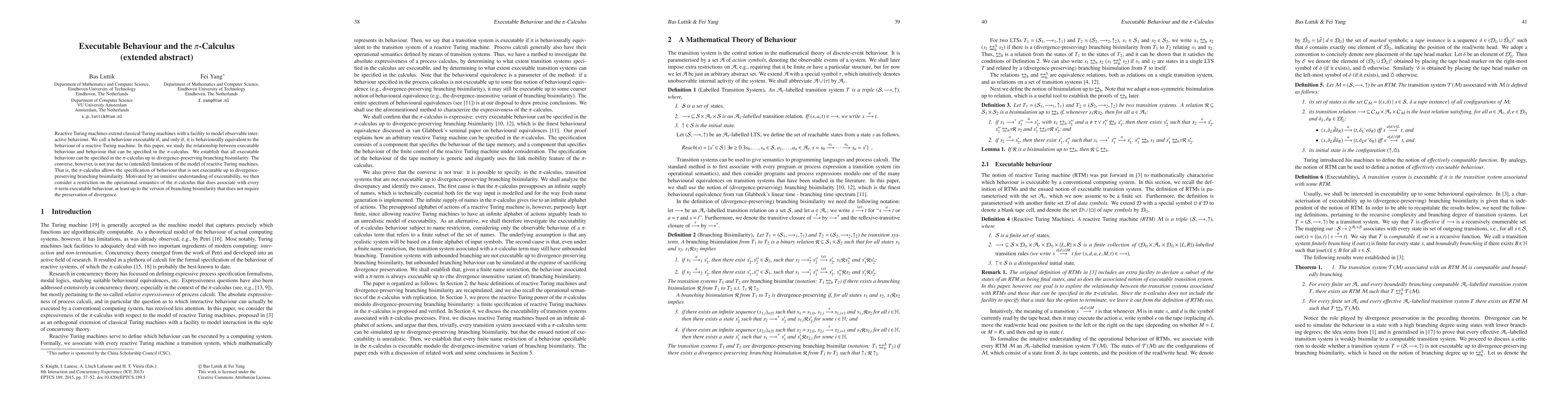 This paper explores the connection between executable behaviour, defined as that which can be modeled by reactive Turing machines, and the pi-calculus, a formal language for specifying concurrent systems. It establishes that all executable behaviour can be expressed in the pi-calculus up to a specific type of branching bisimilarity, but not all pi-calculus specifications correspond to executable behaviour. The paper also proposes a restricted version of the pi-calculus that ensures every pi-term corresponds to executable behaviour.