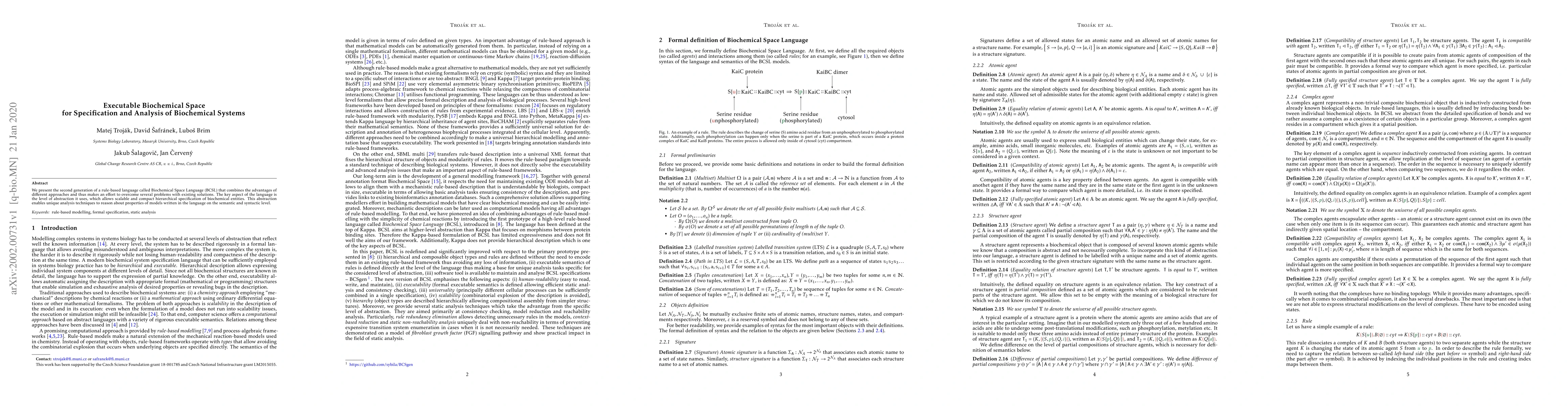 The paper introduces the second-generation Biochemical Space Language (BCSL) for scalable and compact specification of biochemical systems, leveraging high-level abstraction for hierarchical modeling and enabling advanced analysis techniques for model properties.