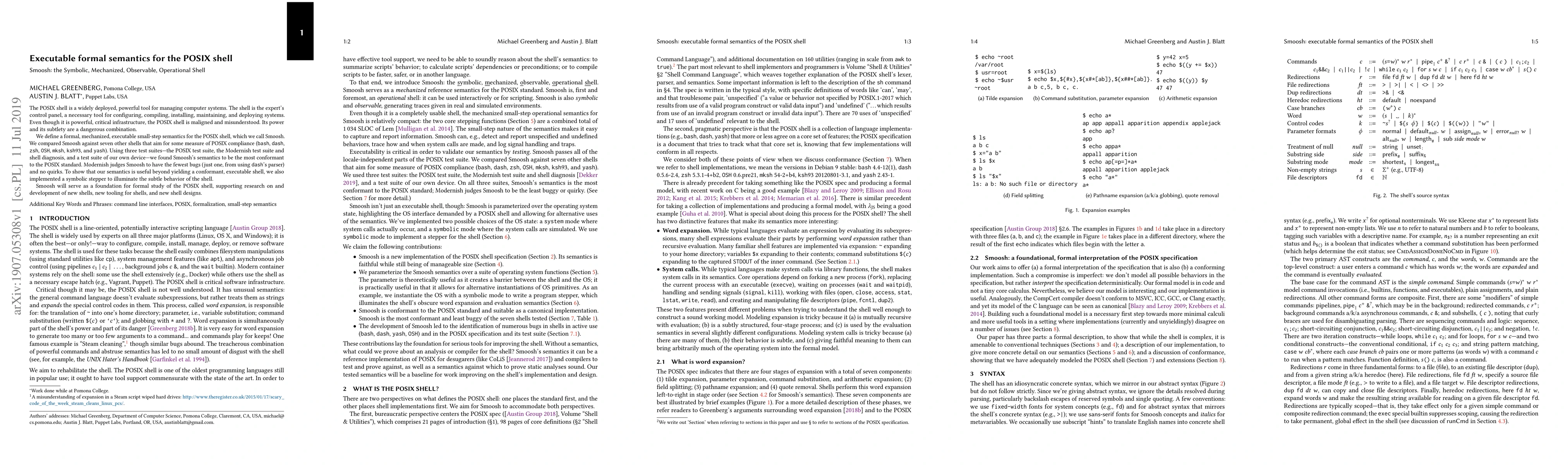This paper presents Smoosh, a formal, executable semantics for the POSIX shell, which was found to be the most conformant to the POSIX standard among several compared shells. Smoosh also includes a symbolic stepper to reveal the shell's subtle behavior, serving as a foundation for future research and development in shell technology.