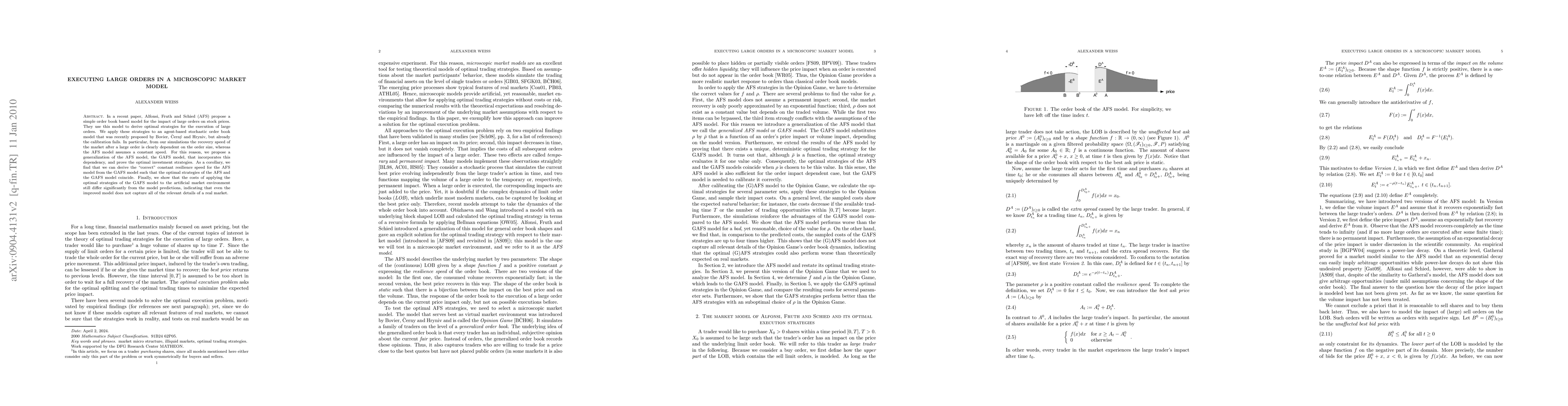 In a recent paper, Alfonsi, Fruth and Schied (AFS) propose a simple order book based model for the impact of large orders on stock prices. They use this model to derive optimal strategies for the execution of large orders. We apply these strategies to an agent-based stochastic order book model that was recently proposed by Bovier, \v{C}ern\'{y} and Hryniv, but already the calibration fails. In particular, from our simulations the recovery speed of the market after a large order is clearly dependent on the order size, whereas the AFS model assumes a constant speed. For this reason, we propose a generalization of the AFS model, the GAFS model, that incorporates this dependency, and prove the optimal investment strategies. As a corollary, we find that we can derive the ``correct'' constant resilience speed for the AFS model from the GAFS model such that the optimal strategies of the AFS and the GAFS model coincide. Finally, we show that the costs of applying the optimal strategies of the GAFS model to the artificial market environment still differ significantly from the model predictions, indicating that even the improved model does not capture all of the relevant details of a real market.