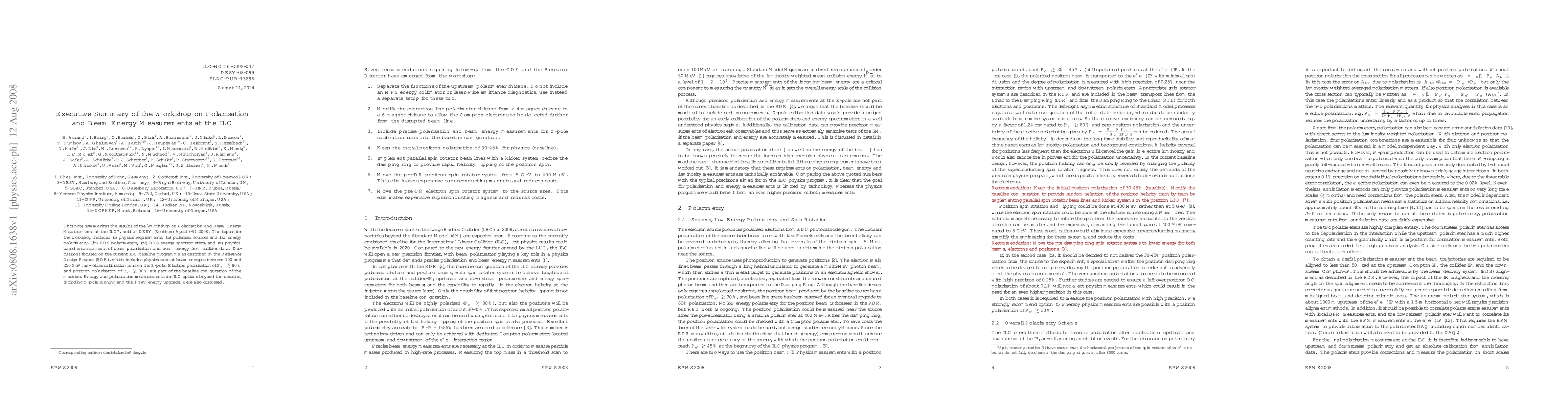 This workshop summarised discussions on polarisation and beam energy measurements at the International Linear Collider (ILC), focusing on physics requirements, polarised sources, and various polarimeters and energy spectrometers. The meeting also covered calibration runs and future ILC upgrade plans.