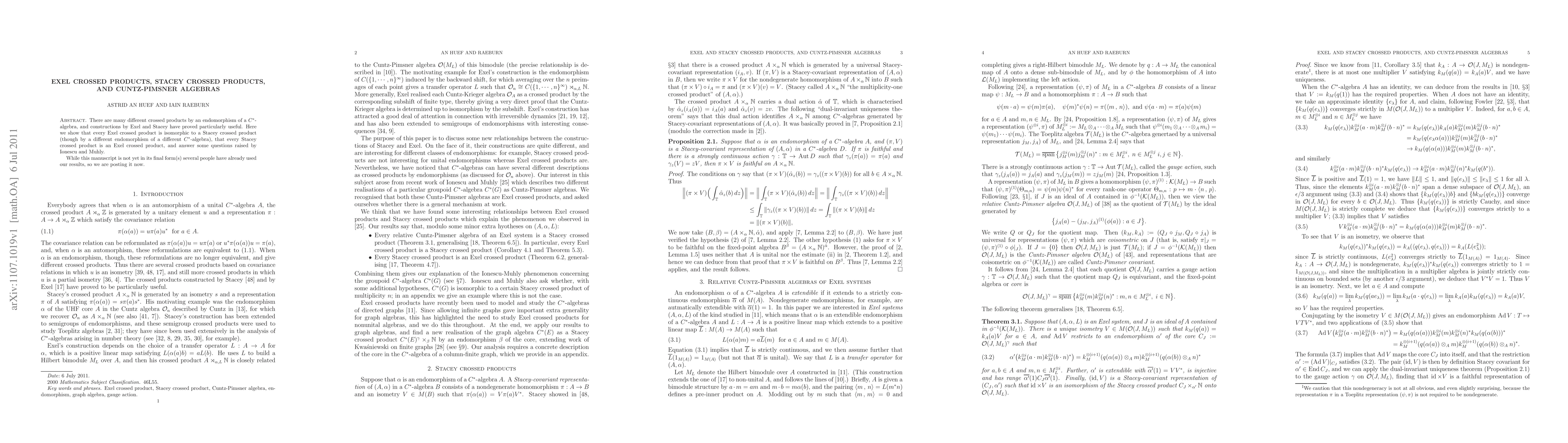 This paper demonstrates the isomorphism between Exel and Stacey crossed products of C*-algebras, showing that each Exel crossed product is equivalent to a Stacey crossed product via different endomorphisms and C*-algebras, and resolves questions posed by Ionescu and Muhly. Despite being incomplete, the results have already seen practical use.