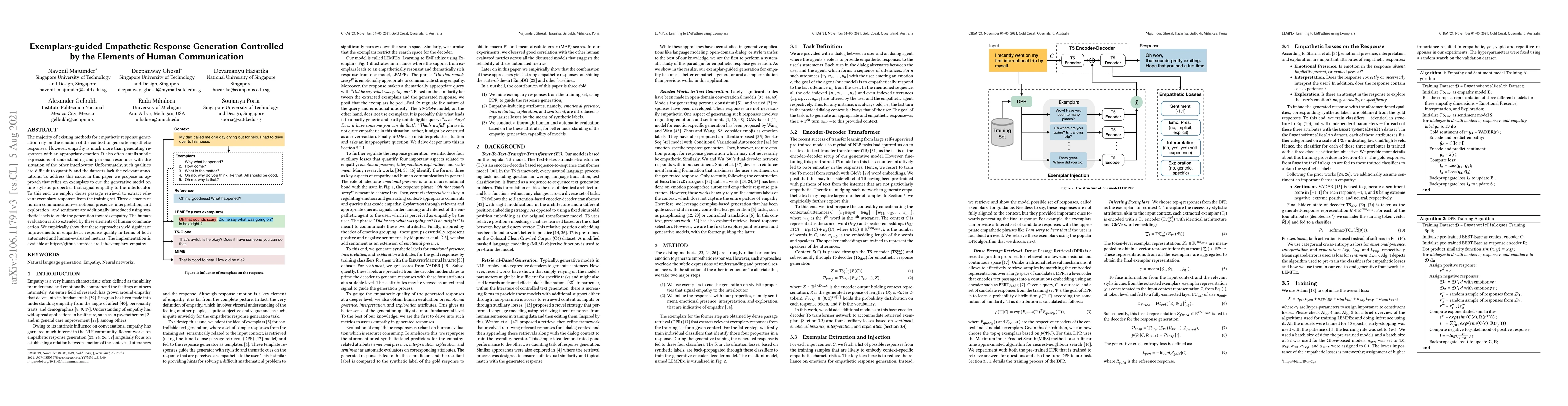 This research introduces an approach to generate empathetic responses using exemplars from the training set, focusing on stylistic properties signaling empathy. It introduces three elements of human communication—emotional presence, interpretation, and exploration, and sentiment—to guide the generation process, resulting in significant improvements in empathetic response quality according to both automated and human evaluations.