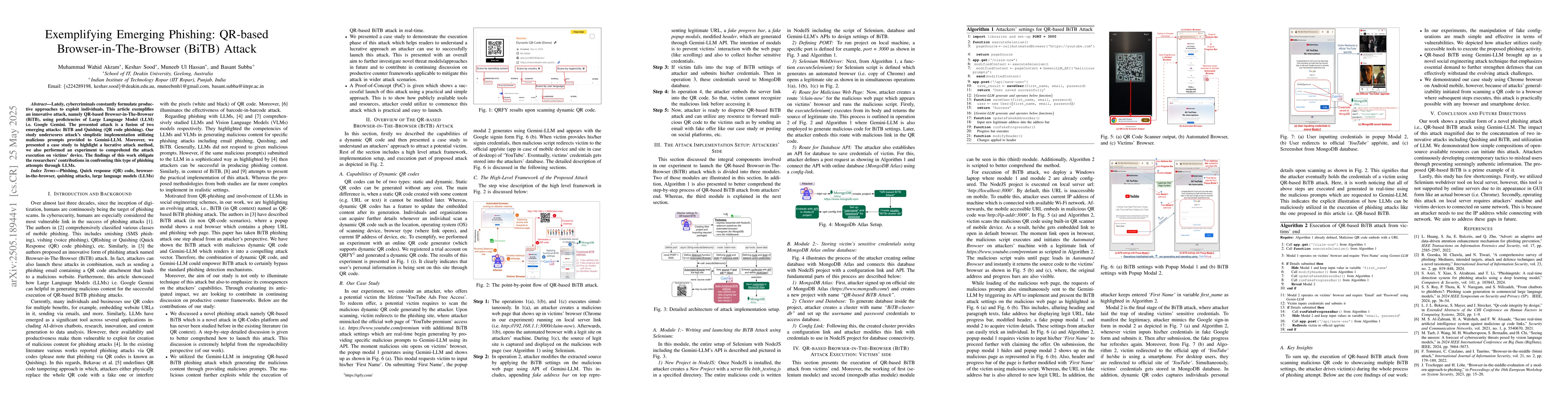 The paper exemplifies an innovative QR-based Browser-in-The-Browser (BiTB) attack using Google Gemini LLM, demonstrating its implementation through malicious prompts and a case study.
