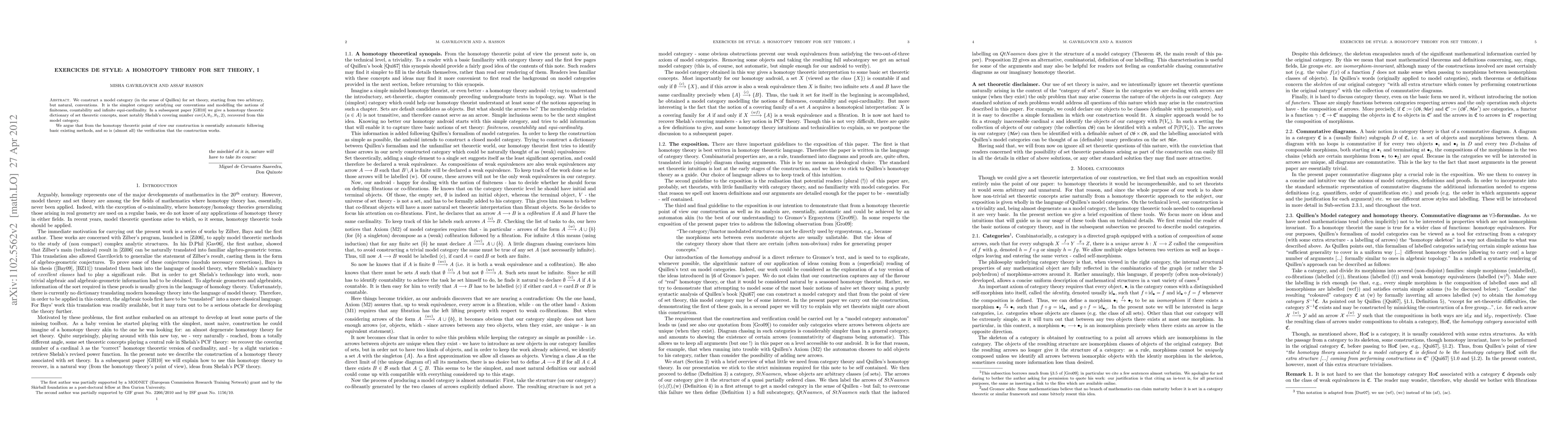 This paper constructs a model category for set theory based on two natural conventions, modeling notions like finiteness, countability, and infinite equi-cardinality. It also sets the stage for a subsequent paper that will establish a homotopy-theoretic dictionary for set-theoretic concepts, notably Shelah's covering number.