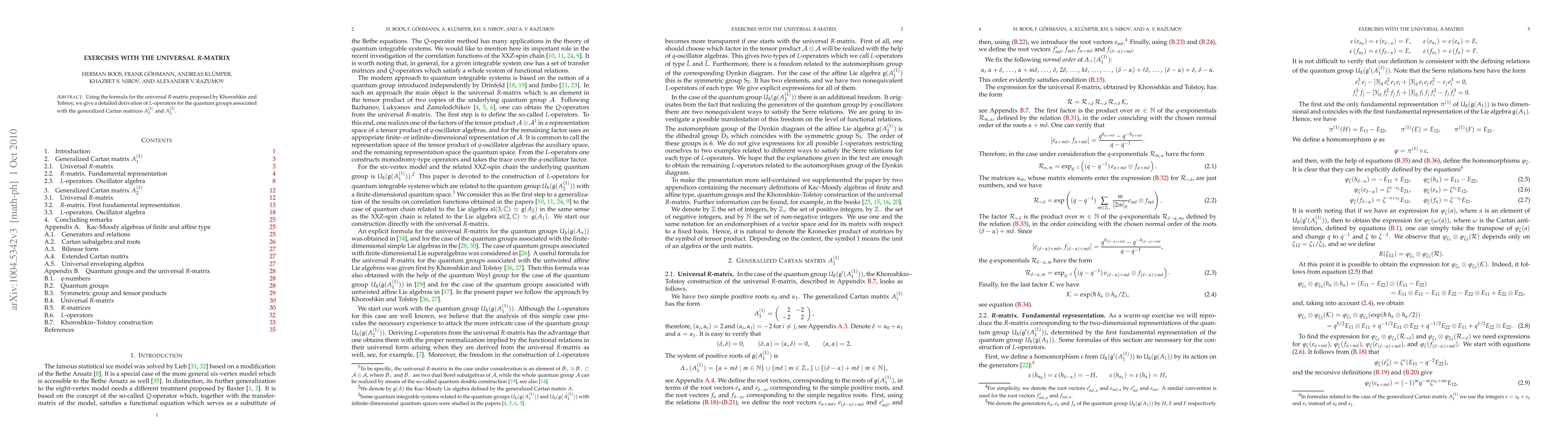 Using the formula for the universal $R$-matrix proposed by Khoroshkin and Tolstoy, we give a detailed derivation of $L$-operators for the quantum groups associated with the generalized Cartan matrices $A_1^{(1)}$ and $A_2^{(1)}$.