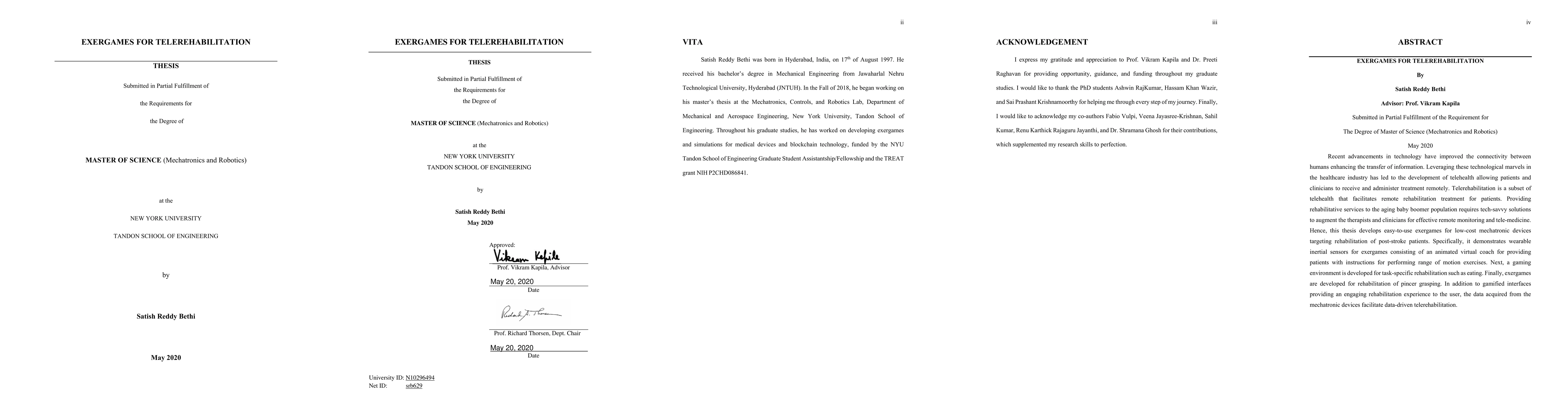Recent advancements in technology have improved the connectivity between humans enhancing the transfer of information. Leveraging these technological marvels in the healthcare industry has led to the development of telehealth allowing patients and clinicians to receive and administer treatment remotely. Telerehabilitation is a subset of telehealth that facilitates remote rehabilitation treatment for patients. Providing rehabilitative services to the aging baby boomer population requires tech-savvy solutions to augment the therapists and clinicians for effective remote monitoring and tele-medicine. Hence, this thesis develops easy-to-use exergames for low-cost mechatronic devices targeting rehabilitation of post-stroke patients. Specifically, it demonstrates wearable inertial sensors for exergames consisting of an animated virtual coach for providing patients with instructions for performing range of motion exercises. Next, a gaming environment is developed for task-specific rehabilitation such as eating. Finally, exergames are developed for rehabilitation of pincer grasping. In addition to gamified interfaces providing an engaging rehabilitation experience to the user, the data acquired from the mechatronic devices facilitate data-driven telerehabilitation.