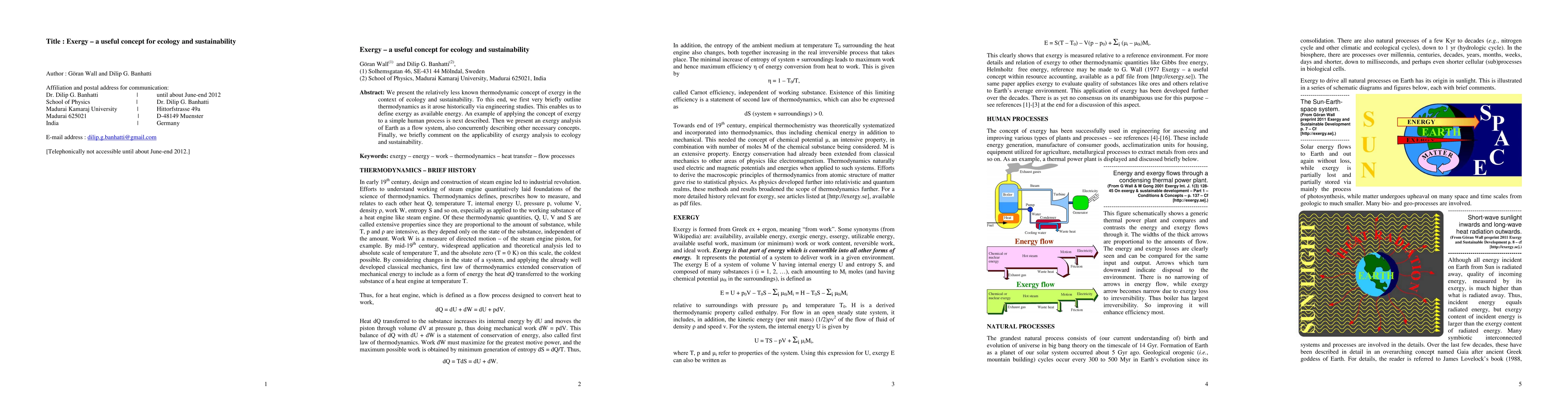 This paper introduces exergy, a thermodynamic concept of available energy, in the context of ecology and sustainability. It applies exergy analysis to Earth as a flow system and discusses its relevance to ecological and sustainability studies.