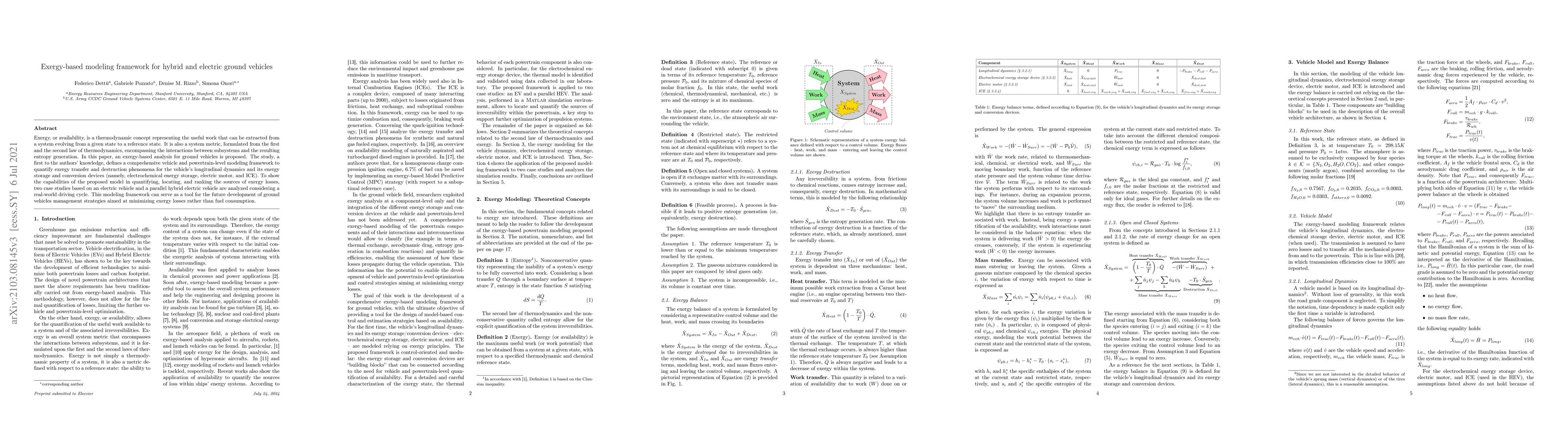 This paper proposes an exergy-based modeling framework for hybrid and electric ground vehicles to quantify exergy transfer and destruction in subsystems like electrochemical storage and motors. The framework is demonstrated through case studies on an electric and parallel hybrid vehicle, aiming to minimize exergy losses instead of fuel consumption.