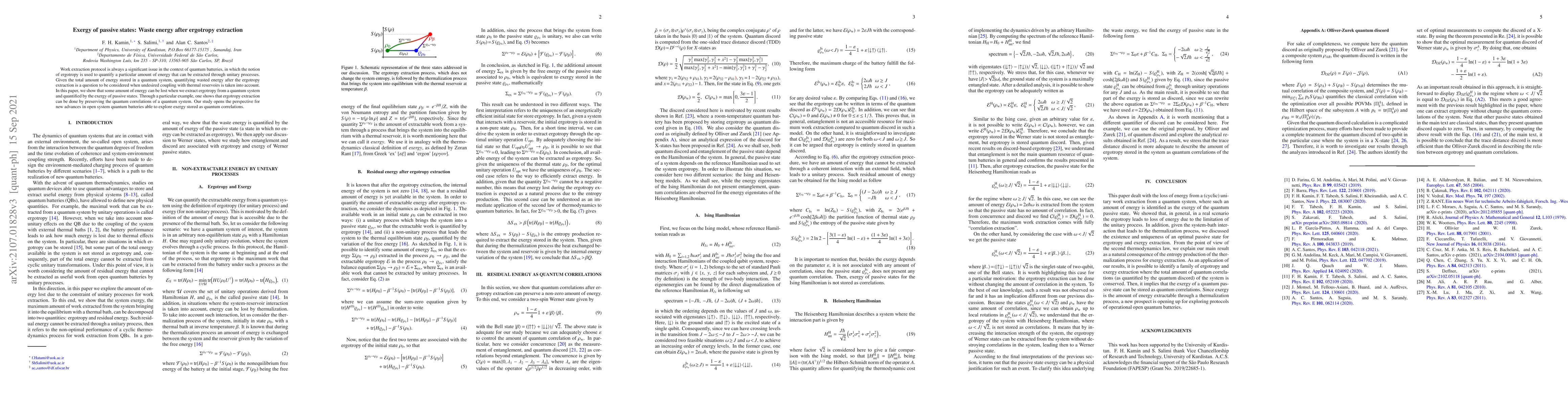 Work extraction protocol is always a significant issue in the context of quantum batteries, in which the notion of ergotropy is used to quantify a particular amount of energy that can be extracted through unitary processes. Given the total amount of energy stored in a quantum system, quantifying wasted energy after the ergotropy extraction is a question to be considered when undesired coupling with thermal reservoirs is taken into account. In this paper, we show that some amount of energy can be lost when we extract ergotropy from a quantum system and quantified by the exergy of passive states. Through a particular example, one shows that ergotropy extraction can be done by preserving the quantum correlations of a quantum system. Our study opens the perspective for new advances in open system quantum batteries able to explore exergy stored as quantum correlations.