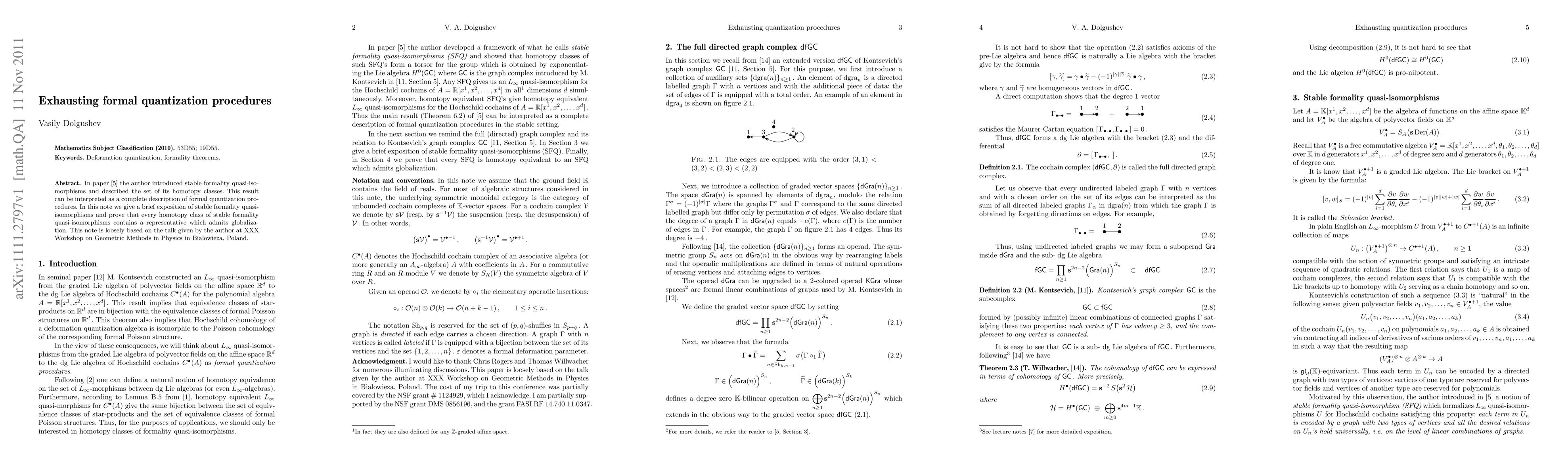 In paper arXiv:1109.6031 the author introduced stable formality quasi-isomorphisms and described the set of its homotopy classes. This result can be interpreted as a complete description of formal quantization procedures. In this note we give a brief exposition of stable formality quasi-isomorphisms and prove that every homotopy class of stable formality quasi-isomorphisms contains a representative which admits globalization. This note is loosely based on the talk given by the author at the XXX Workshop on Geometric Methods in Physics in Bialowieza, Poland.