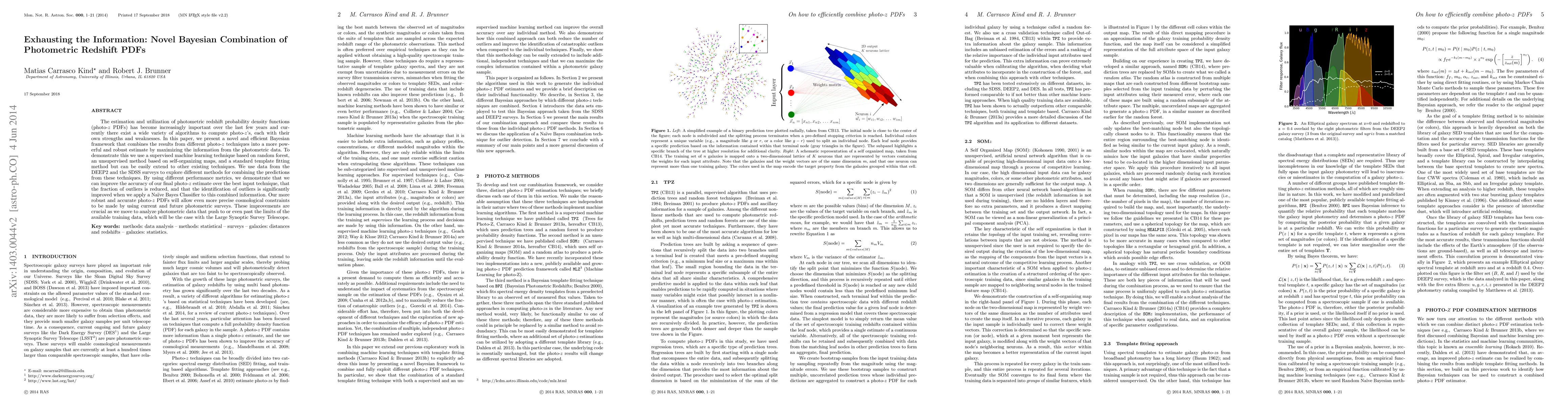 This paper introduces a novel Bayesian framework for combining various photometric redshift probability density functions (photo-$z$ PDFs) to enhance the accuracy and robustness of redshift estimates. The proposed method integrates results from different photo-$z$ techniques, demonstrating improved accuracy and outlier identification using data from DEEP2 and SDSS surveys.
