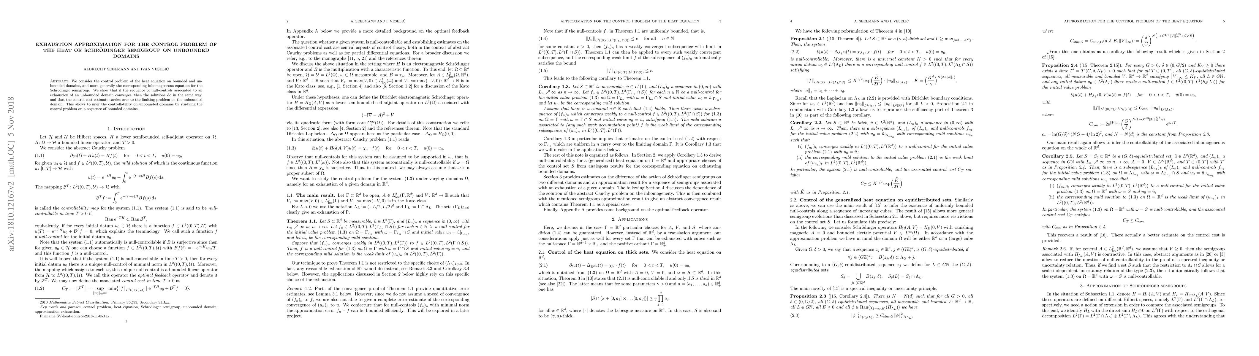 Summary: This paper addresses the control problem for the heat and Schrödinger semigroups on both bounded and unbounded domains, demonstrating that convergence of null-control sequences leads to solution convergence and control cost estimates. It infers controllability on unbounded domains through the study of bounded domain sequences.