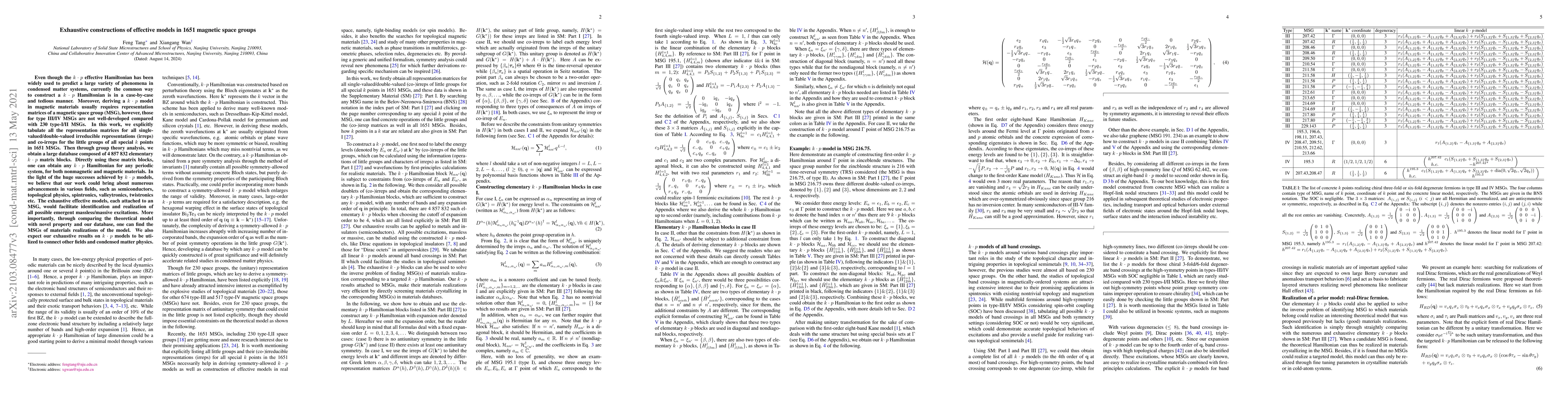 Researchers developed a comprehensive database of k·p Hamiltonian matrices for 1651 magnetic space groups, enabling the creation of effective models for various condensed matter systems.
