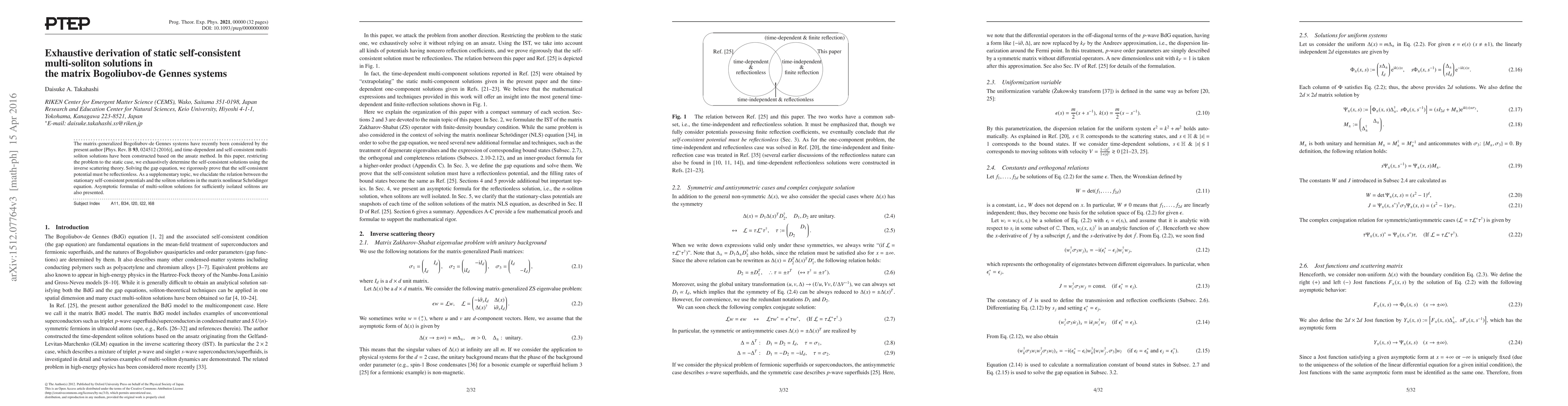 This paper exhaustively derives static self-consistent multi-soliton solutions for matrix-generalized Bogoliubov-de Gennes systems using inverse scattering theory, proving the reflectionless nature of the self-consistent potential. It also explores the connection between these potentials and soliton solutions in the matrix nonlinear Schrödinger equation.