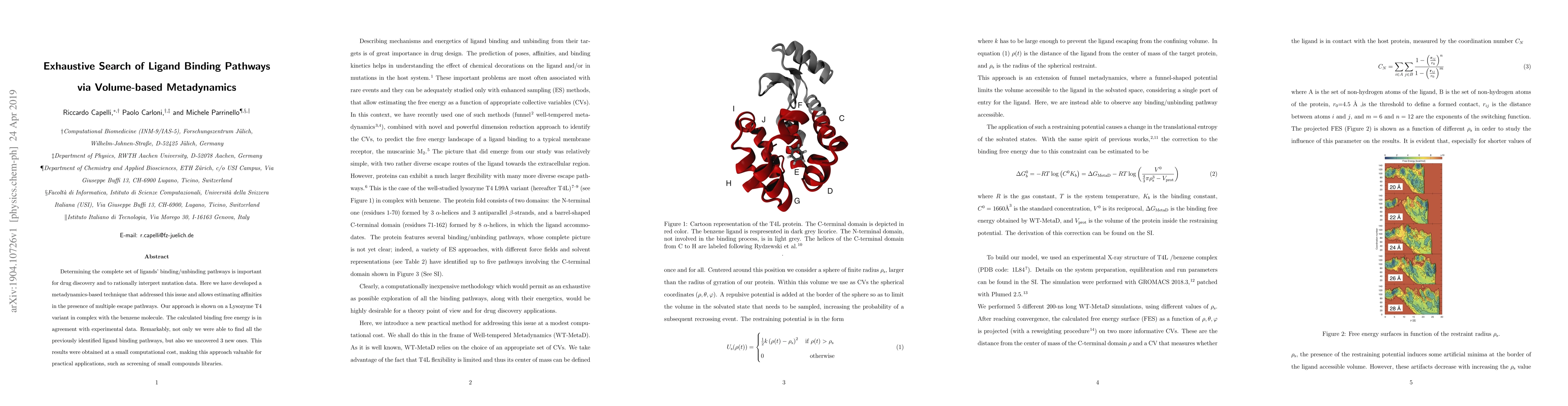 Determining the complete set of ligands' binding/unbinding pathways is important for drug discovery and to rationally interpret mutation data. Here we have developed a metadynamics-based technique that addressed this issue and allows estimating affinities in the presence of multiple escape pathways. Our approach is shown on a Lysozyme T4 variant in complex with the benzene molecule. The calculated binding free energy is in agreement with experimental data. Remarkably, not only we were able to find all the previously identified ligand binding pathways, but also we uncovered 3 new ones. This results were obtained at a small computational cost, making this approach valuable for practical applications, such as screening of small compounds libraries.
