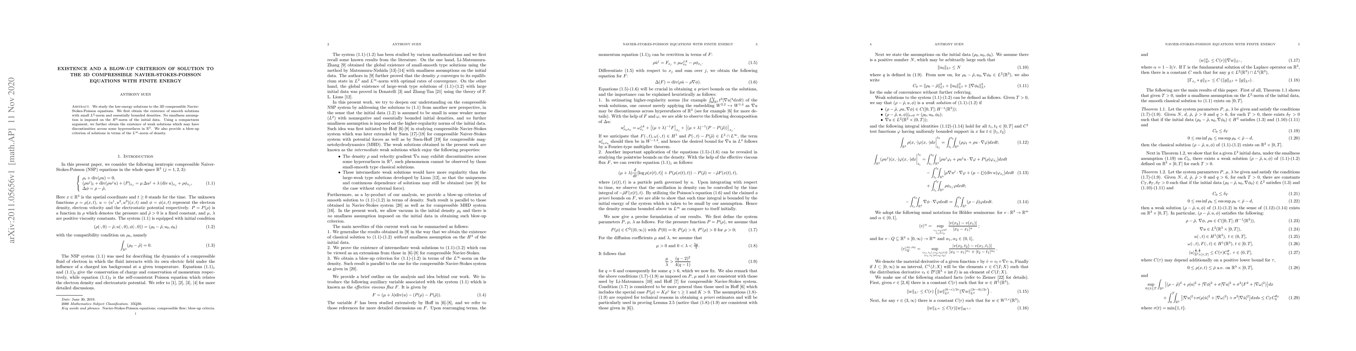 This research paper establishes the existence of solutions to 3D compressible Navier-Stokes-Poisson equations with finite energy, including those with small L^2-norms and potentially discontinuous weak solutions, without imposing smallness assumptions on initial data. A blow-up criterion is also provided in terms of density's L^inity-norm.