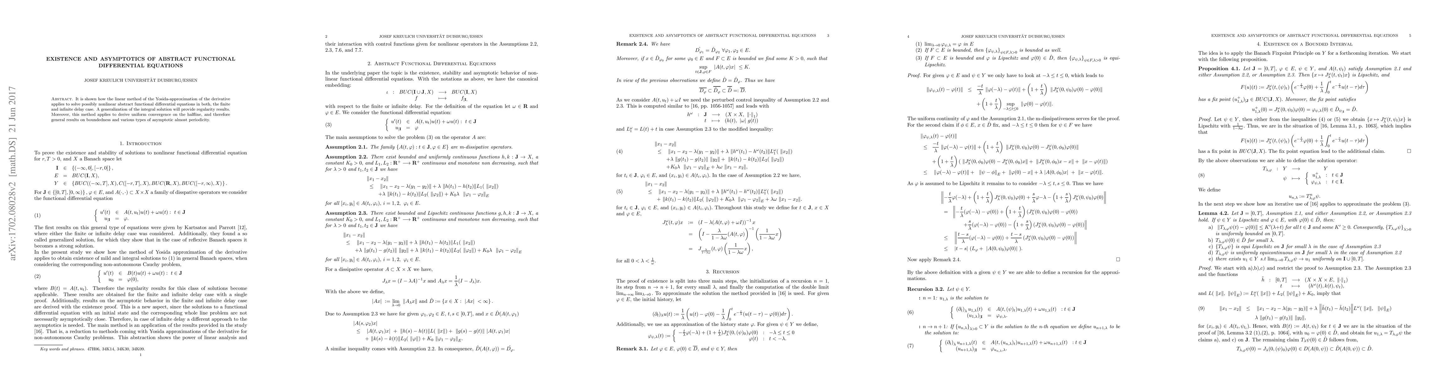 This paper develops a method to solve abstract functional differential equations using the Yosida-approximation of the derivative, leading to regularity results on boundedness and asymptotic almost periodicity.