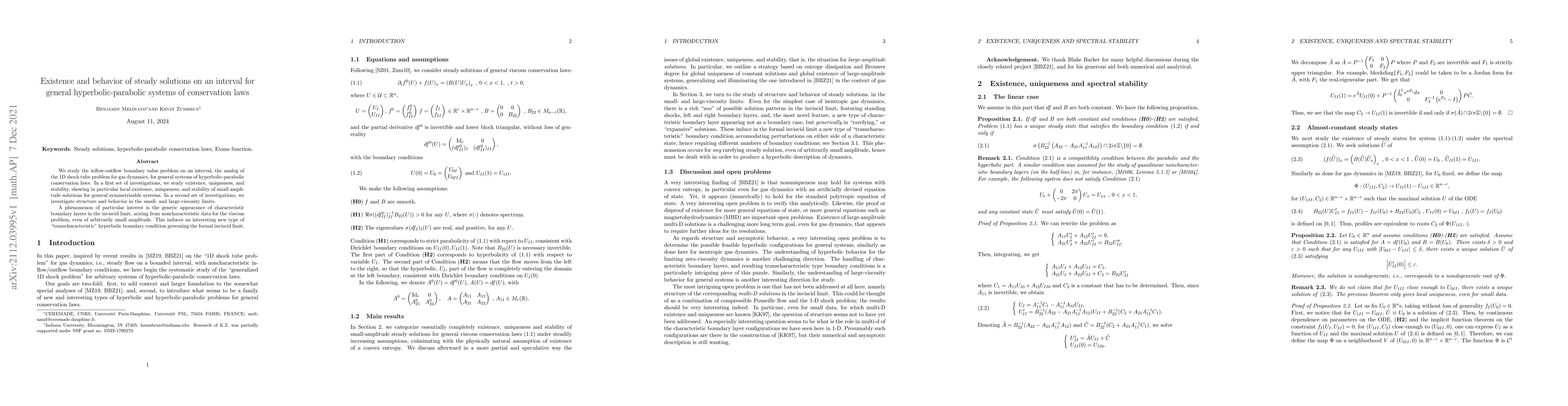 This paper investigates the existence, uniqueness, and stability of steady solutions for hyperbolic-parabolic conservation laws on an interval, focusing on the inflow-outflow boundary value problem. It reveals the emergence of characteristic boundary layers in the inviscid limit, leading to a new type of transcharacteristic hyperbolic boundary condition.