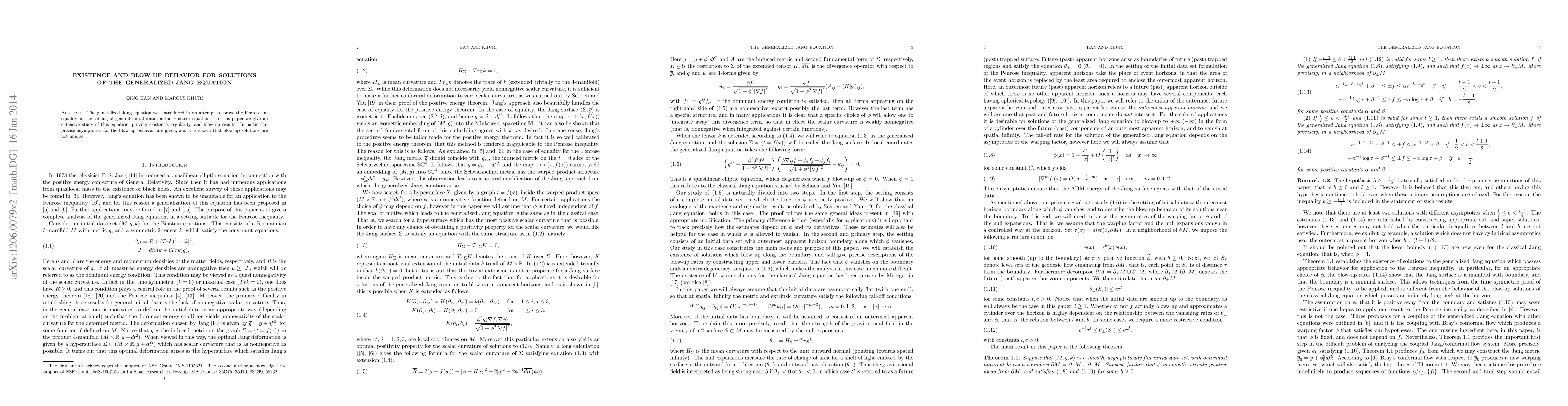 This paper investigates the generalized Jang equation, proving its existence, regularity, and blow-up behavior. It provides precise asymptotics for blow-up scenarios and demonstrates that blow-up solutions are not unique.