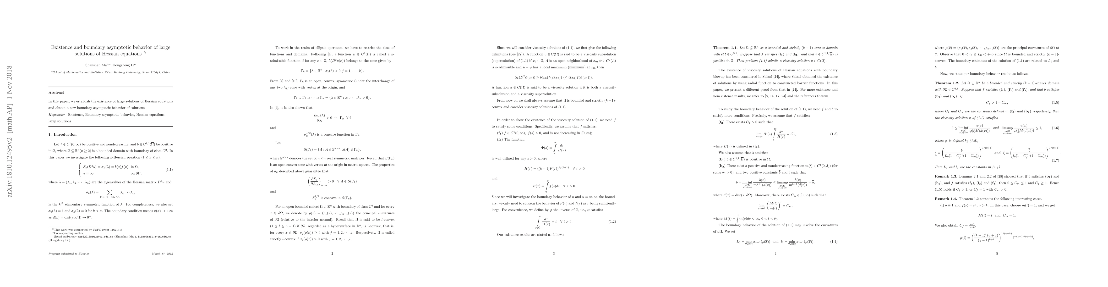 This paper establishes the existence of large solutions to Hessian equations and discovers a new boundary asymptotic behavior of these solutions, contributing to our understanding of their long-term dynamics.