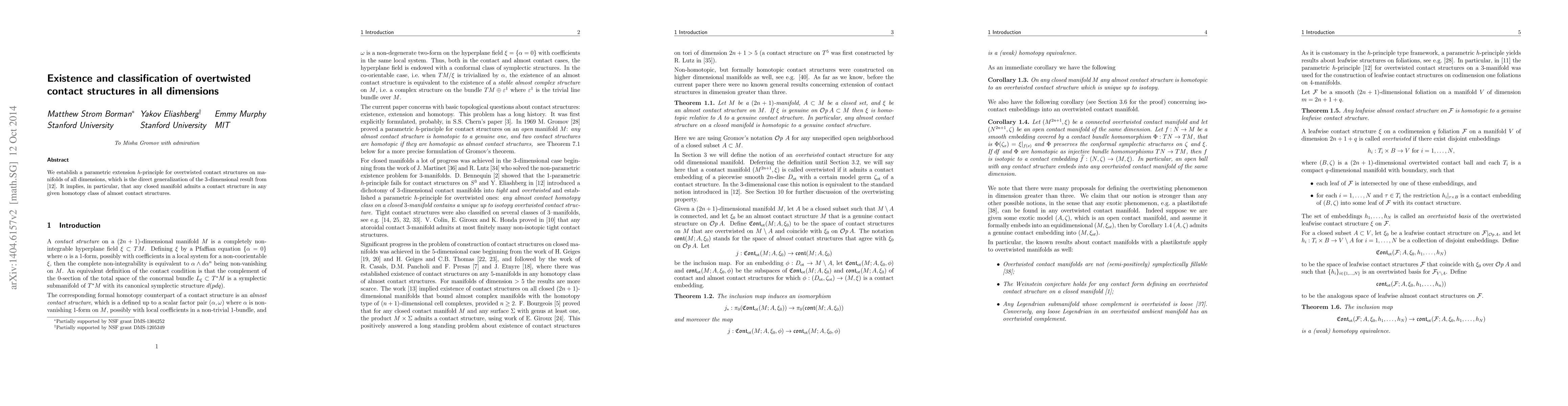 Summary: This paper proves a parametric $h$-principle for overtwisted contact structures across all dimensions, generalizing a $3$-dimensional result, and demonstrates that any closed manifold can host a contact structure in any specified homotopy class of almost contact structures.