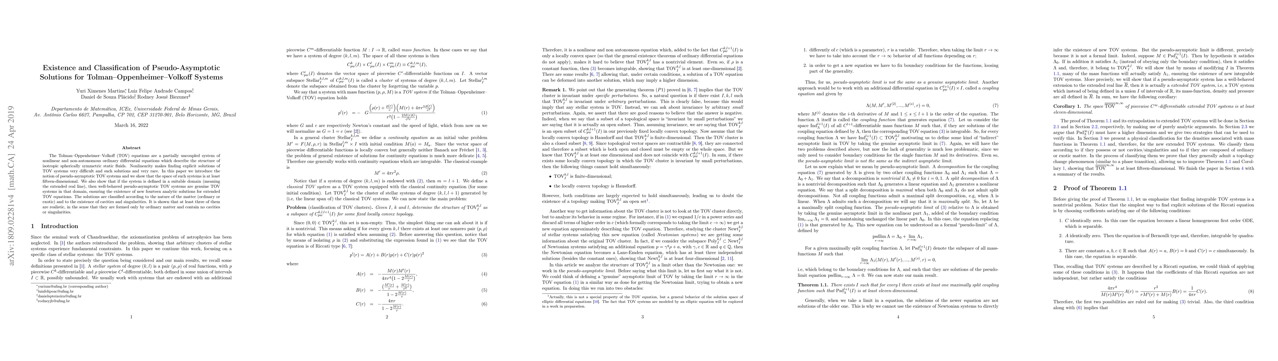 The Tolman--Oppenheimer--Volkoff (TOV) equations are a partially uncoupled system of nonlinear and non-autonomous ordinary differential equations which describe the structure of isotropic spherically symmetric static fluids. Nonlinearity makes finding explicit solutions of TOV systems very difficult and such solutions and very rare. In this paper we introduce the notion of pseudo-asymptotic TOV systems and we show that the space of such systems is at least fifteen-dimensional. We also show that if the system is defined in a suitable domain (meaning the extended real line), then well-behaved pseudo-asymptotic TOV systems are genuine TOV systems in that domain, ensuring the existence of new fourteen analytic solutions for extended TOV equations. The solutions are classified according to the nature of the matter (ordinary or exotic) and to the existence of cavities and singularities. It is shown that at least three of them are realistic, in the sense that they are formed only by ordinary matter and contain no cavities or singularities.