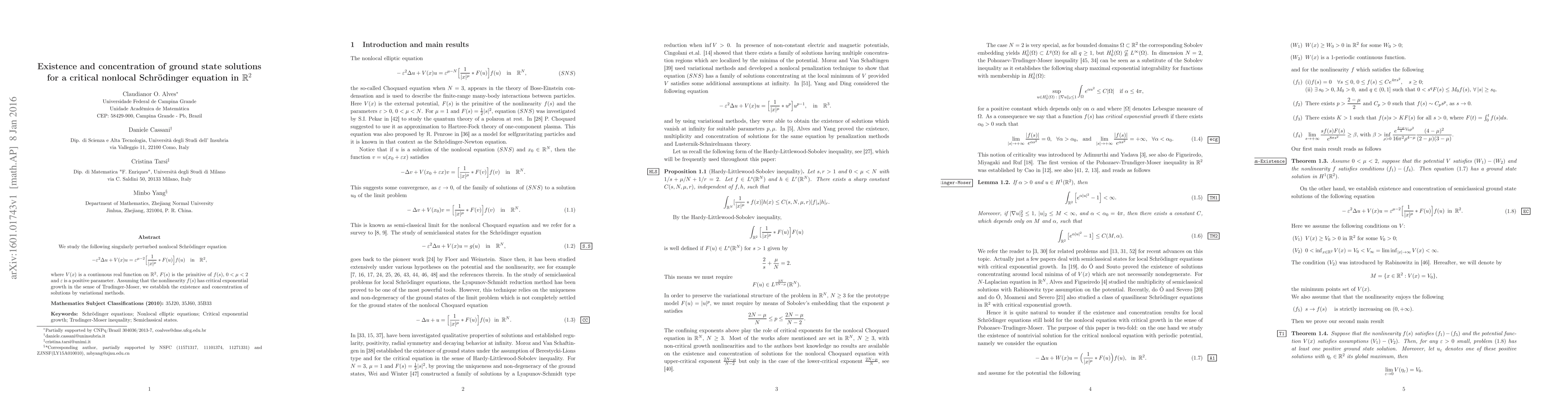 We study the following singularly perturbed nonlocal Schr\"{o}dinger equation $$ -\vr^2\Delta u +V(x)u =\vr^{\mu-2}\Big[\frac{1}{|x|^{\mu}}\ast F(u)\Big]f(u) \quad \mbox{in} \quad \R^2, $$ where $V(x)$ is a continuous real function on $\R^2$, $F(s)$ is the primitive of $f(s)$, $0<\mu<2$ and $\vr$ is a positive parameter. Assuming that the nonlinearity $f(s)$ has critical exponential growth in the sense of Trudinger-Moser, we establish the existence and concentration of solutions by variational methods.