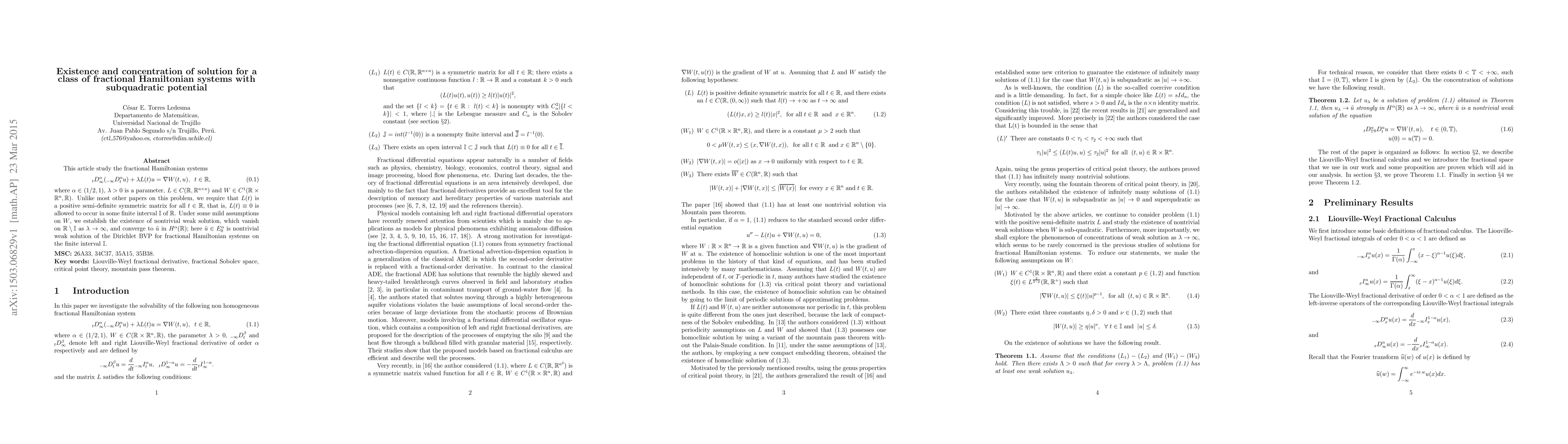 This article study the fractional Hamiltonian systems \begin{eqnarray}\label{00} {_{t}}D_{\infty}^{\alpha}({_{-\infty}}D_{t}^{\alpha}u) + \lambda L(t)u = \nabla W(t, u), \;\;t\in \mathbb{R}, \end{eqnarray} where $\alpha \in (1/2, 1)$, $\lambda >0$ is a parameter, $L\in C(\mathbb{R}, \mathbb{R}^{n\times n})$ and $W \in C^{1}(\mathbb{R} \times \mathbb{R}^n, \mathbb{R})$. Unlike most other papers on this problem, we require that $L(t)$ is a positive semi-definite symmetric matrix for all $t\in \mathbb{R}$, that is, $L(t) \equiv 0$ is allowed to occur in some finite interval $\mathbb{I}$ of $\mathbb{R}$. Under some mild assumptions on $W$, we establish the existence of nontrivial weak solution, which vanish on $\mathbb{R} \setminus \mathbb{I}$ as $\lambda \to \infty,$ and converge to $\tilde{u}$ in $H^{\alpha}(\mathbb{R})$; here $\tilde{u} \in E_{0}^{\alpha}$ is nontrivial weak solution of the Dirichlet BVP for fractional Hamiltonian systems on the finite interval $\mathbb{I}$.