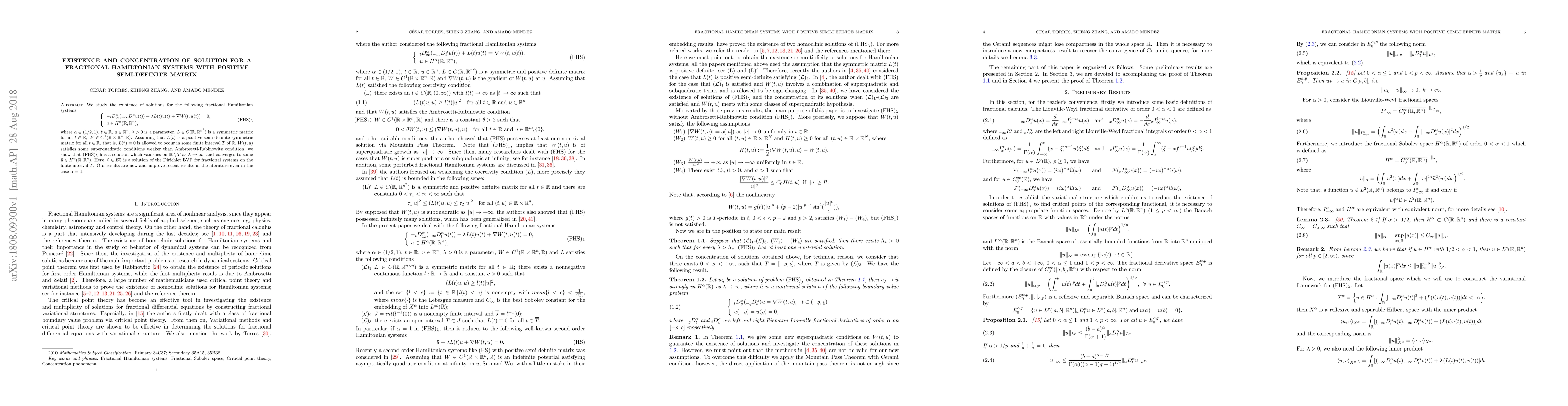 The paper investigates fractional Hamiltonian systems with positive semi-definite matrices, showing that solutions exist which vanish outside a finite interval as lambda approaches infinity, converging to a solution of the Dirichlet BVP.