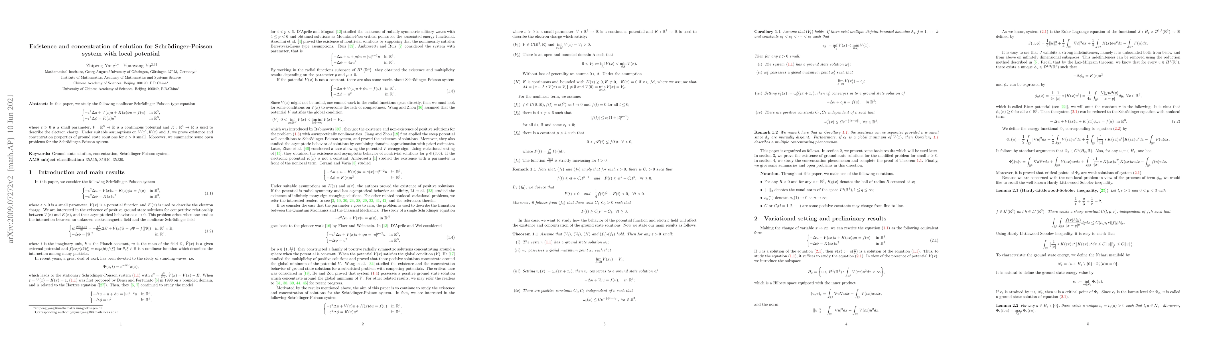 This paper investigates the existence and concentration properties of ground state solutions for a nonlinear Schrödinger-Poisson system with a local potential. Under specific conditions, it proves the existence of such solutions for small positive parameters and discusses potential open problems.