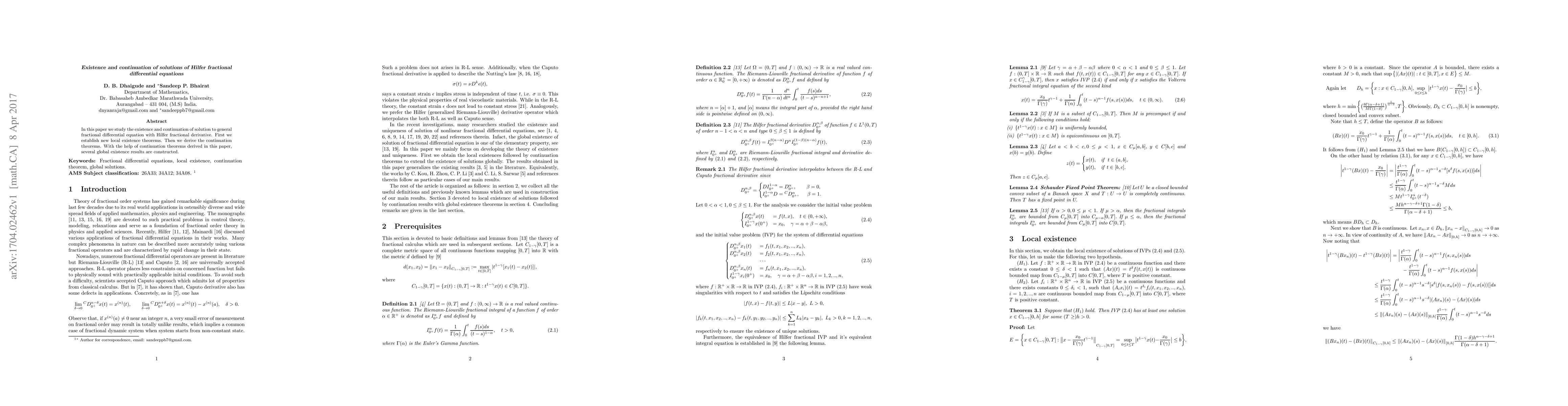 This paper establishes local existence and continuation theorems for solutions of Hilfer fractional differential equations, leading to global existence results.