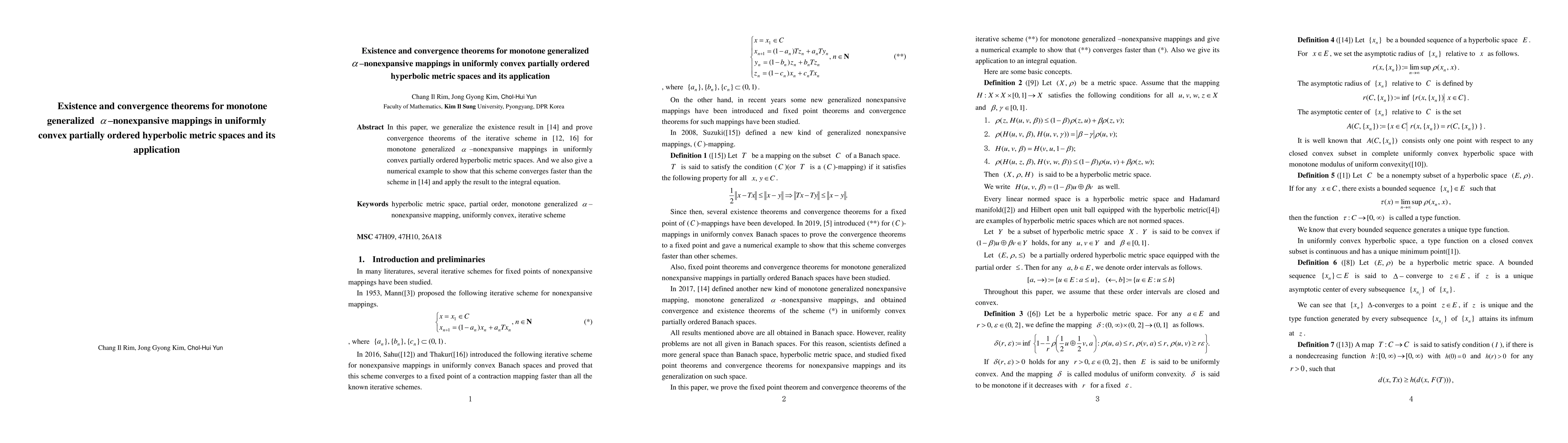 Two-line summary: This paper extends the existence and convergence results for monotone generalized alpha-nonexpansive mappings in uniformly convex partially ordered hyperbolic metric spaces. It proves new convergence theorems for an iterative scheme and demonstrates through a numerical example that the proposed scheme converges faster than a previously established method, applying the result to solve integral equations.
