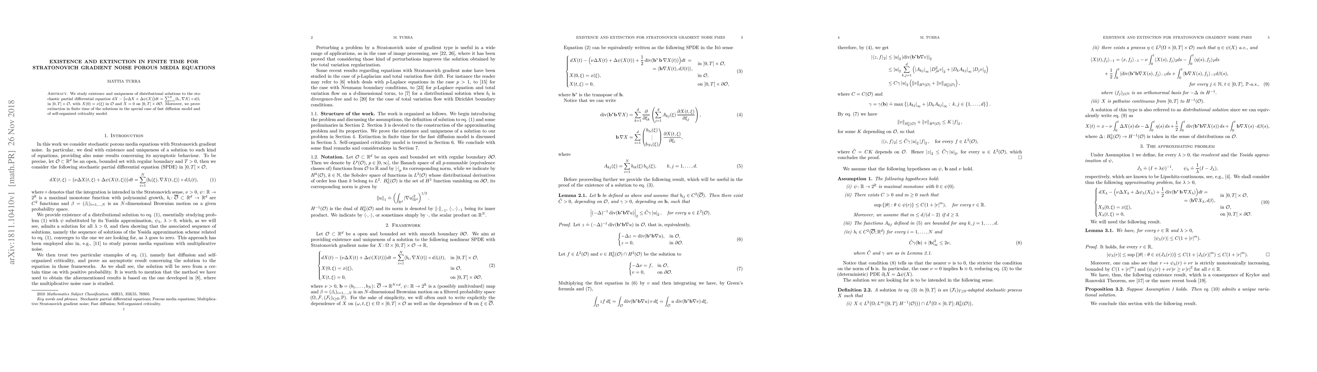 We study existence and uniqueness of distributional solutions to the stochastic partial differential equation $dX - ( \nu \Delta X + \Delta \psi (X) ) dt = \sum_{i=1}^N \langle b_i, \nabla X \rangle \circ d\beta_i$ in $]0,T[ \times \mathcal{O}$, with $X(0) = x(\xi)$ in $\mathcal{O}$ and $X = 0$ on $]0,T[ \times \partial \mathcal{O}$. Moreover, we prove extinction in finite time of the solutions in the special case of fast diffusion model and of self-organized criticality model.