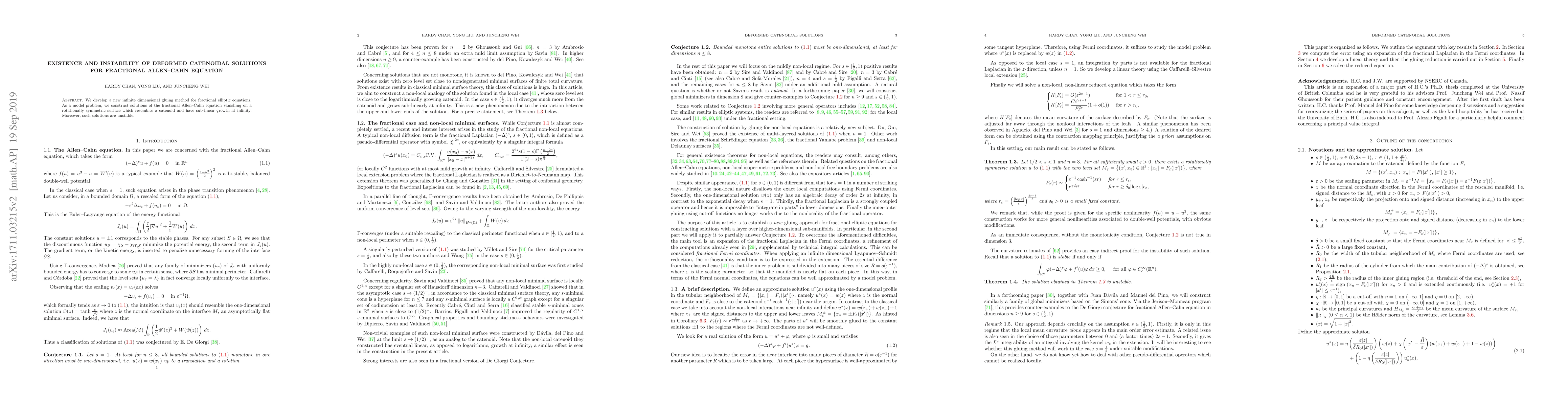 This paper introduces a novel gluing method for fractional elliptic equations and constructs deformed catenoidal solutions for the fractional Allen-Cahn equation that exhibit sub-linear growth at infinity. These solutions, resembling a catenoid, are shown to be unstable.