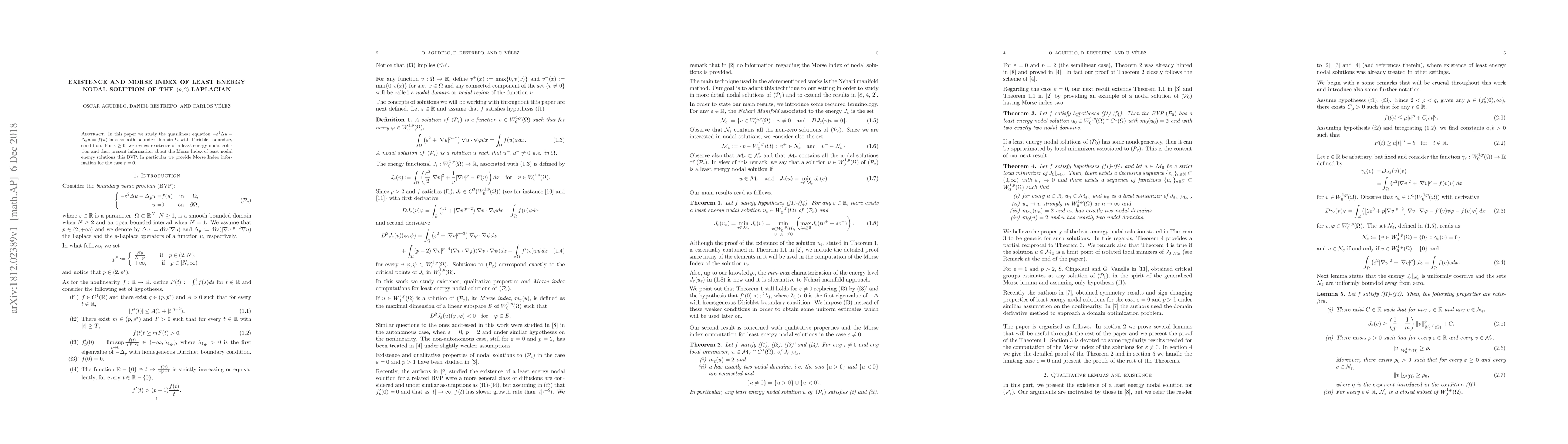 In this paper we study the quasilinear equation $- \ep^2 \Delta u-\Delta_p u=f(u)$ in a smooth bounded domain $\Omega$ with Dirichlet boundary condition. For $\ep \geq 0$, we review existence of a least energy nodal solution and then present information about the Morse Index of least nodal energy solutions this BVP. In particular we provide Morse Index information for the case $\ep =0$.