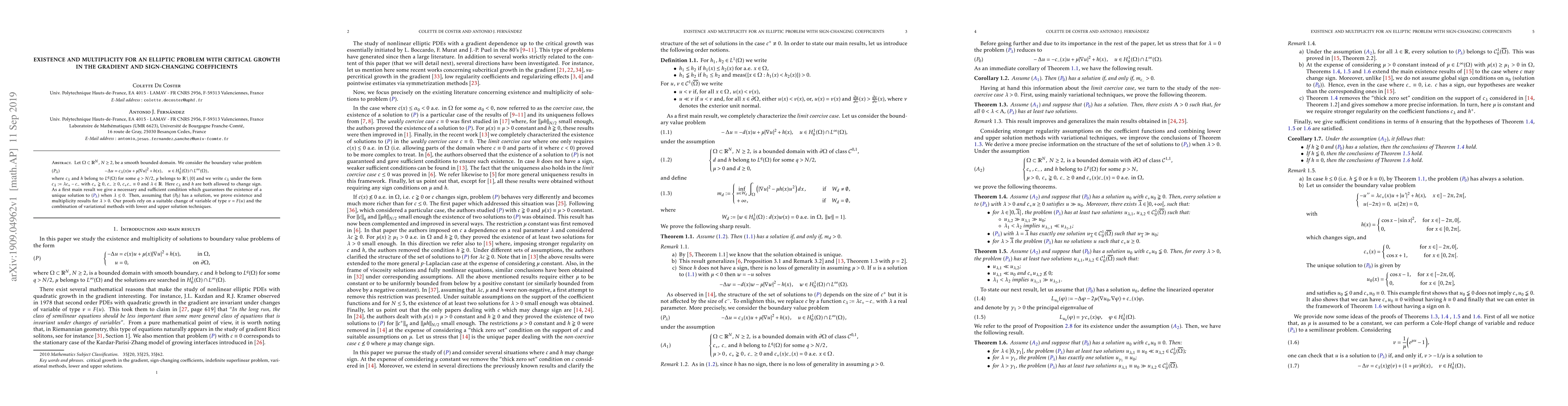 Let $\Omega \subset \mathbb{R}^N$, $N \geq 2$, be a smooth bounded domain. We consider the boundary value problem \begin{equation} \label{Plambda-Abstract-ch3} \tag{$P_{\lambda}$} -\Delta u = c_{\lambda}(x) u + \mu |\nabla u|^2 + h(x)\,, \quad u \in H_0^1(\Omega) \cap L^{\infty}(\Omega)\,, \end{equation} where $c_{\lambda}$ and $h$ belong to $L^q(\Omega)$ for some $q > N/2$, $\mu$ belongs to $\mathbb{R} \setminus \{0\}$ and we write $c_{\lambda}$ under the form $c_{\lambda}:= \lambda c_{+} - c_{-}$ with $c_{+} \gneqq 0$, $c_{-} \geq 0$, $c_{+} c_{-} \equiv 0$ and $\lambda \in \mathbb{R}$. Here $c_{\lambda}$ and $h$ are both allowed to change sign. As a first main result we give a necessary and sufficient condition which guarantees the existence of a unique solution to \eqref{Plambda-Abstract-ch3} when $\lambda \leq 0$. Then, assuming that $(P_0)$ has a solution, we prove existence and multiplicity results for $\lambda > 0$. Our proofs rely on a suitable change of variable of type $v = F(u)$ and the combination of variational methods with lower and upper solution techniques.