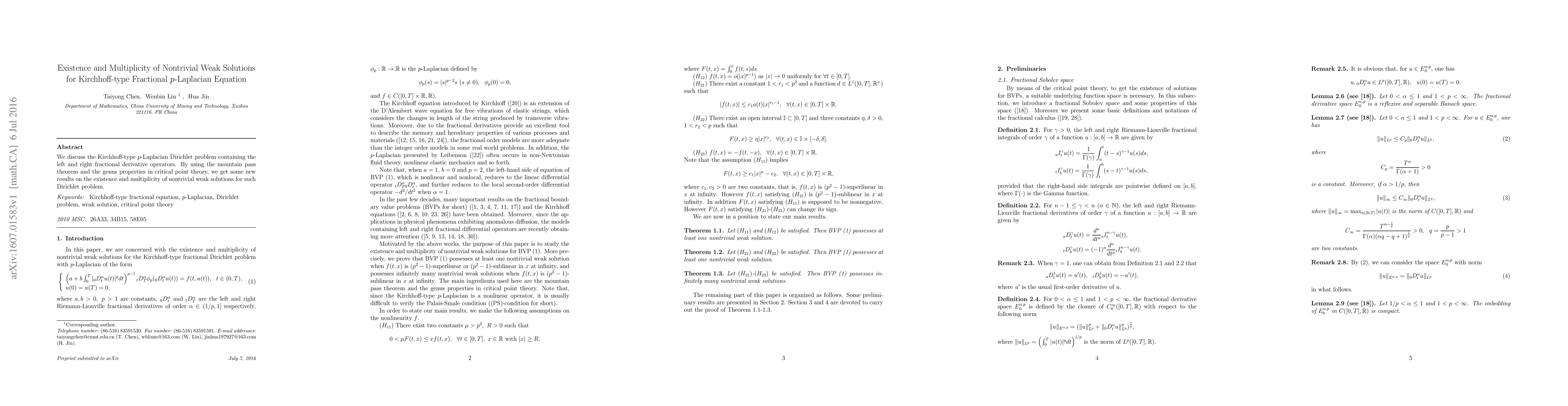 This paper explores the existence and multiplicity of nontrivial weak solutions for a Kirchhoff-type fractional $p$-Laplacian equation using the mountain pass theorem and genus properties in critical point theory. New results are obtained regarding the nontrivial solutions for the associated Dirichlet problem.